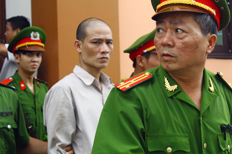 Đặng Quốc Tú (35 tuổi) bị dẫn giải ra xe chở phạm. Khi hầu hết các bị cáo khác đều khai nhận tội, Tú cho rằng vào đêm 14/3/2013, anh ta chỉ can ngăn, không đánh đấm nạn nhân. Bị cáo 35 tuổi một mực kêu oan và đòi thực nghiệm lại hiện trường vụ án.