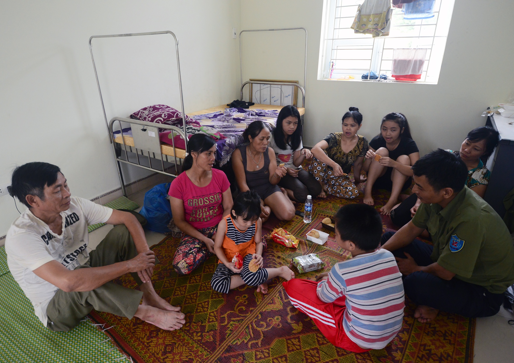| Người dân được sơ tán lên trạm y tế của phường tại một tòa nhà nhà 3 tầng. |