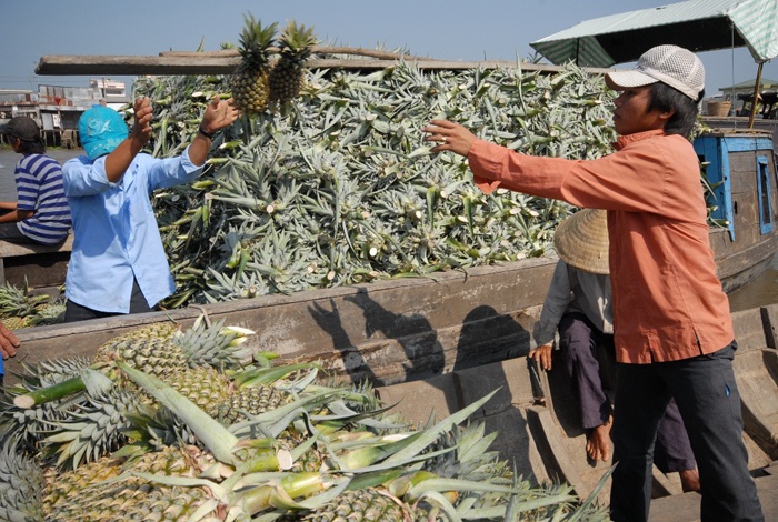 Công việc của anh Tài là thu mua tất cả các loại trái cây của nhà vườn đem ra chợ rồi bán sỉ cho thương lái đưa đi các nơi khác tiêu thụ.