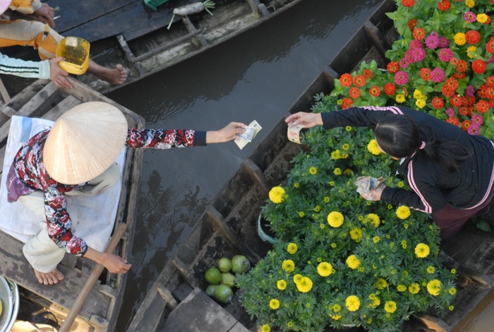 Các xuồng bán loại này gọi là xuồng dịch vụ (thường là xuồng nhỏ) len lỏi phục vụ khách đi chợ và cả khách tham quan.