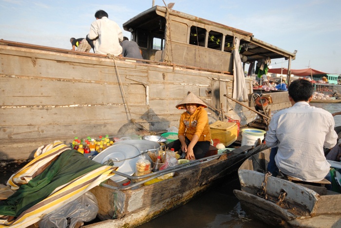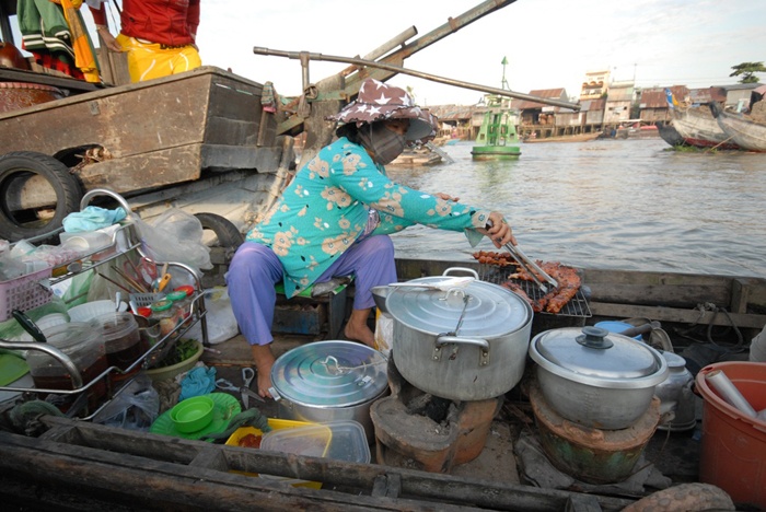 Rất dễ bắt gặp những quán ăn uống di động như thế này ở chợ nổi.