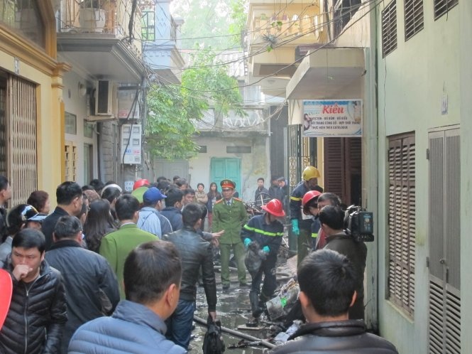 Đến 8h45 cả 6 thi thể trong căn nhà cháy đã được đưa ra ngoài cấp cứu. Theo các cán bộ y tế, khi cơ quan chức năng phá được cửa, họ phát hiện 6 thi thể tập trung ở gác xép, tất cả đều dồn về một góc nhà. Ảnh Tuổi Trẻ.