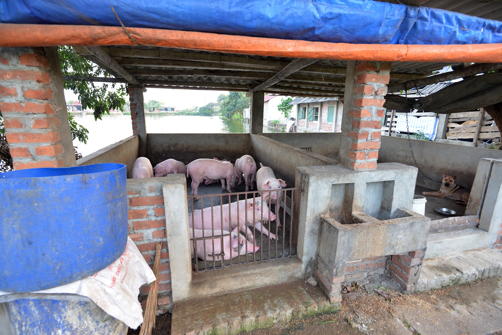 Cách đó không xa, một chuồng lợn nằm sát ao Sen, hàng ngày nước thải vẫn đổ trực tiếp xuống đây.