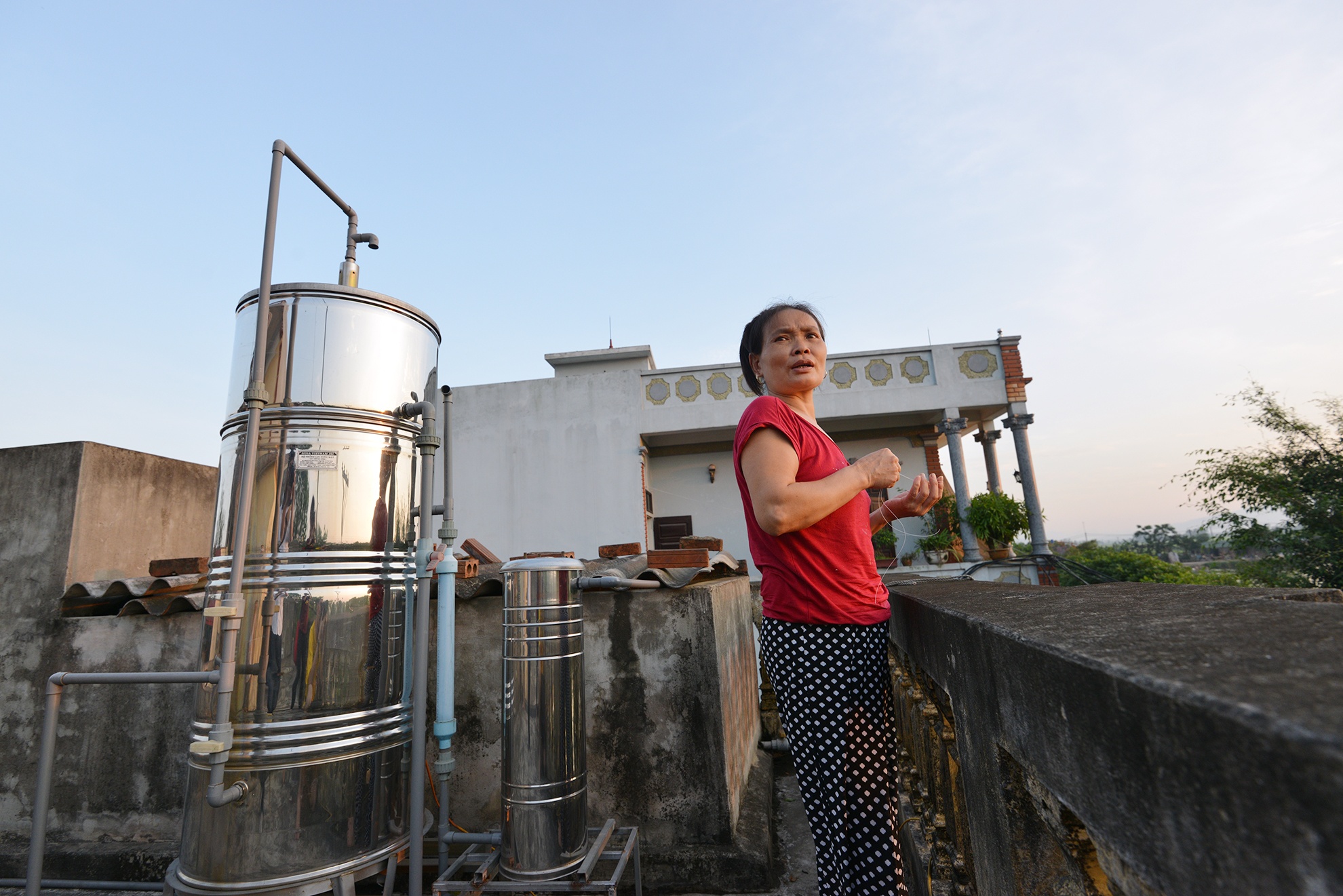 Người dân xây những bể lọc bằng xi măng, sau đó cho cát sỏi vào. Nước được chuyển sang các bình inox để sinh hoạt.