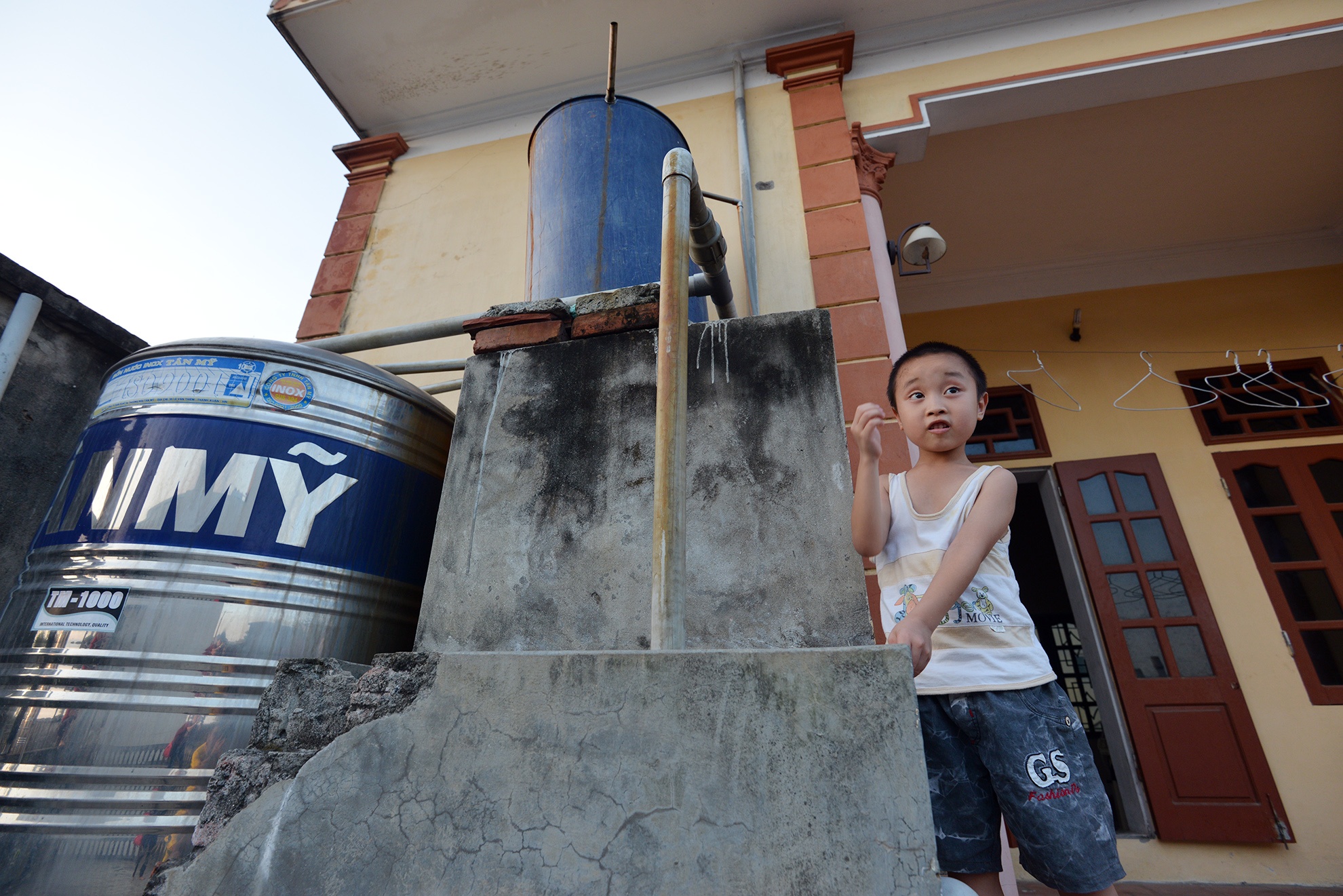 Mỗi ụ nước, máy bơm có khoảng 10 gia đình góp tiền chung để xây. Công nghệ lọc nước ở đây vẫn rất sơ sài, nước dẫn từ ao về chỉ được lọc qua lớp cát, sỏi và sử dụng. Một số gia đình có điều kiện thì mua thêm máy lọc nước (có giá từ 4-5 triệu đồng) vì nước quá bẩn, tanh và có mùi hôi.