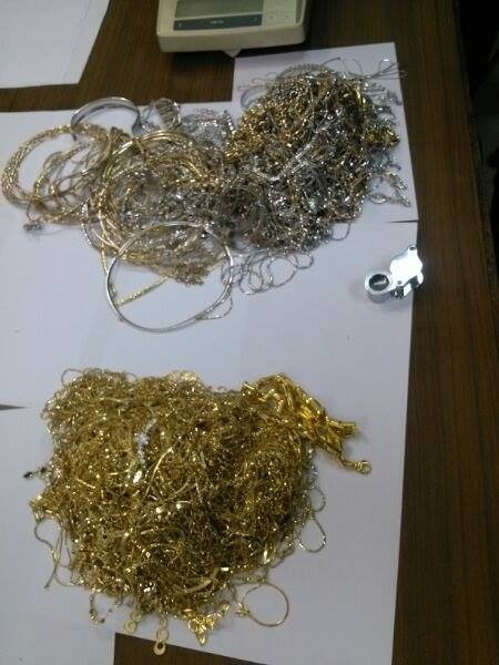 Kiểm tra hành chính chiếc xe, lực lượng 141 phát hiện trong cặp vải màu đen chứa vàng tây, vàng trắng, dây chuyền, vòng cổ…Trên xe taxi lúc này có 3 vị khách nam.