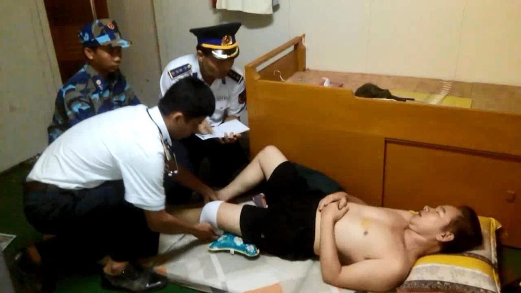 Lực lượng Cảnh sát biển tiếp cận tài Sunrise 689. Các chiến sĩ đã tiếp tế lương thực, nước uống cho các thuyền viên sau nhiều ngày bị cướp biển khống chế và chăm sóc các thuyền viên bị thương.