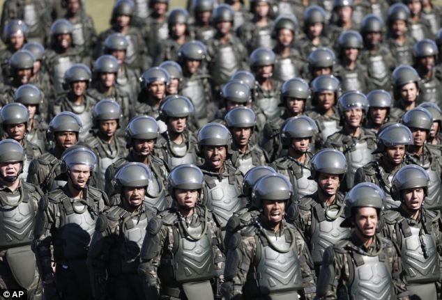 Nhằm phòng ngừa tình trạng bạo loạn nổ ra tại World Cup 2014, lực lượng cảnh sát nước chủ nhà được trang bị dàn vũ khí tối tân nhất.