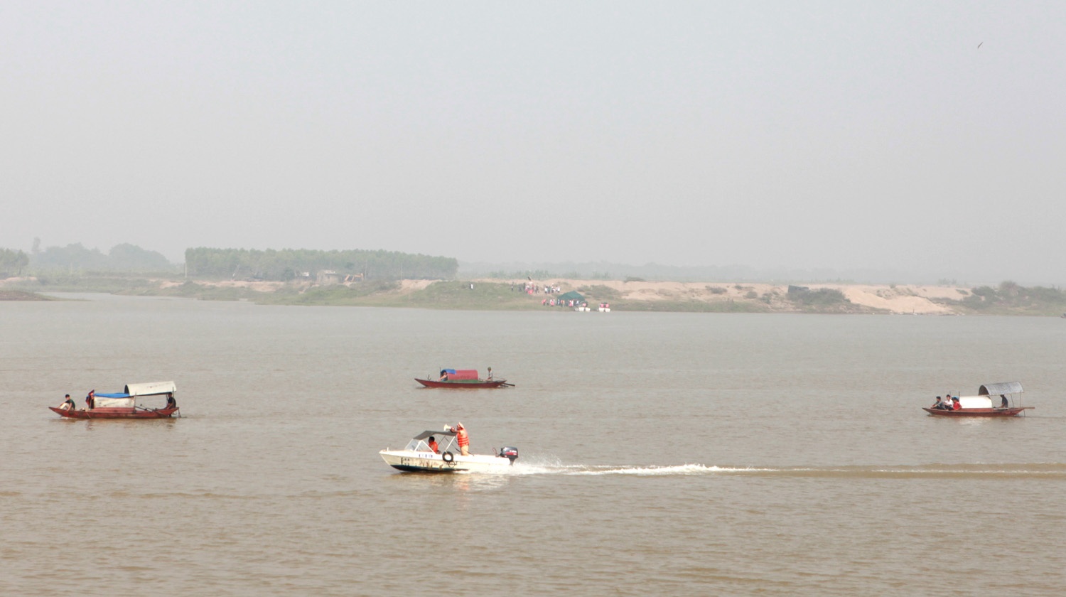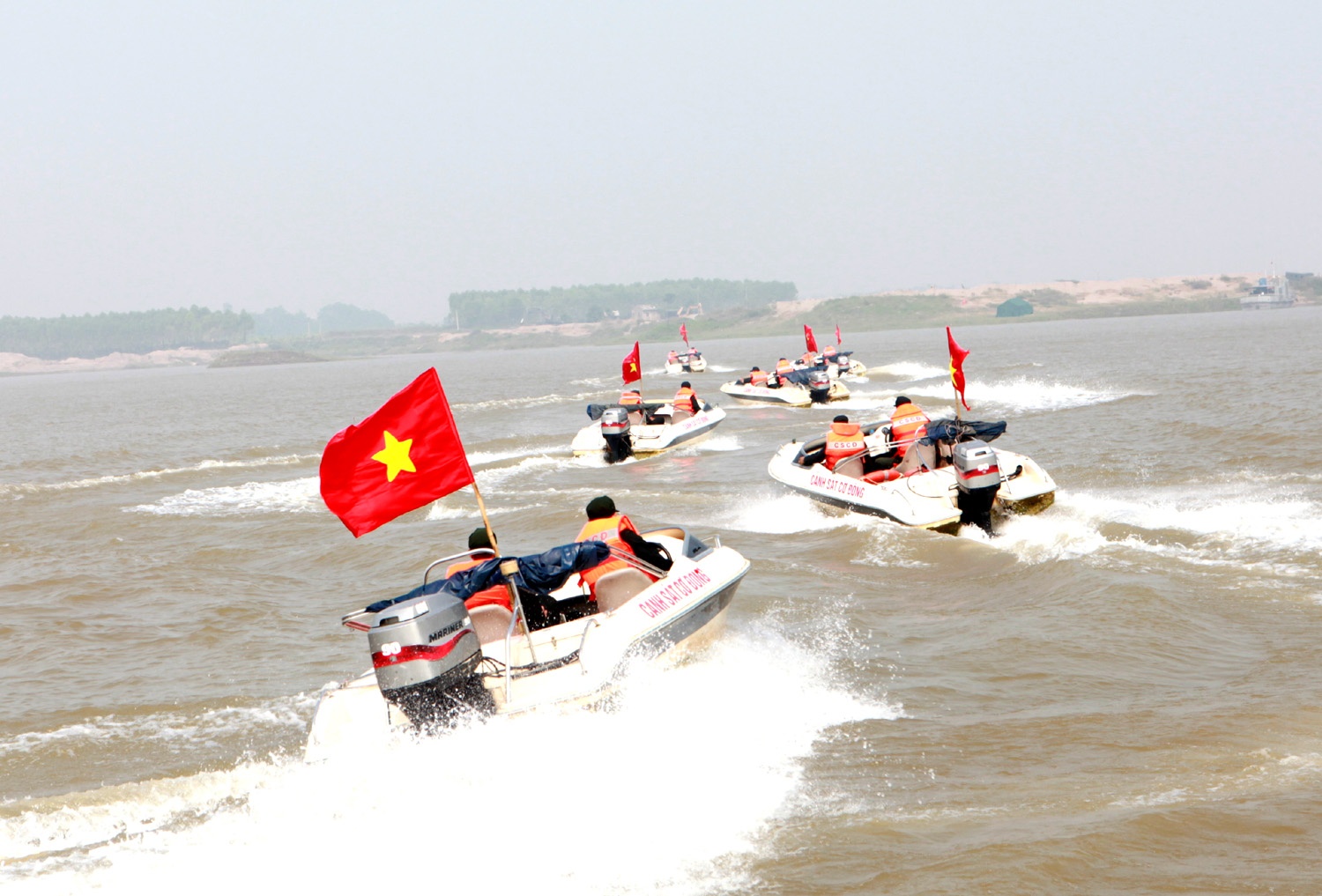 Lực lượng Cảnh sát cơ động sử dụng đội hình ca nô tuần tra tìm kiếm cứu nạn.