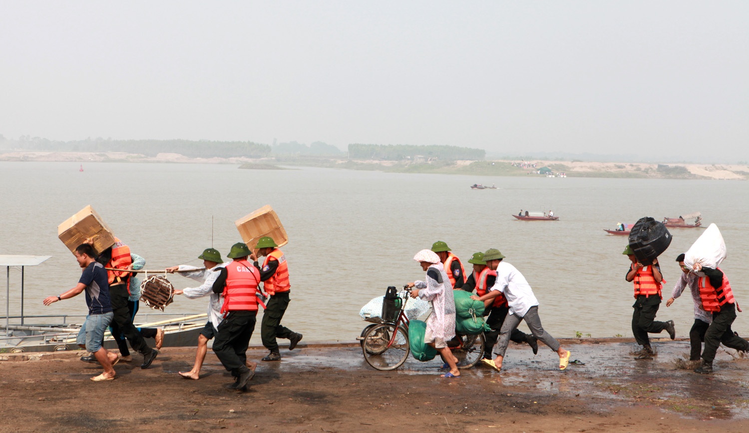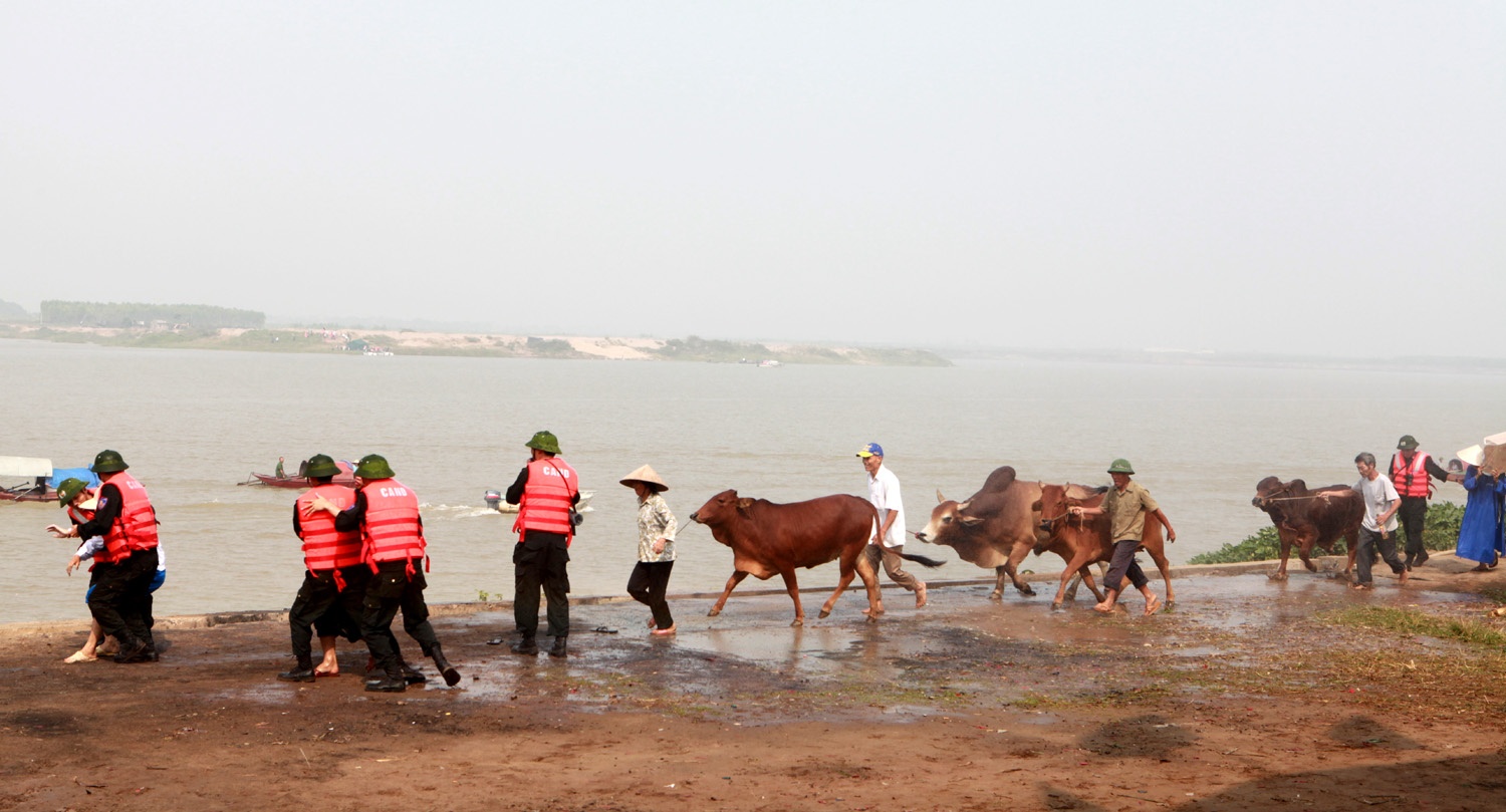 | Sơ tán tài sản cho người dân ra khỏi vùng bão. |