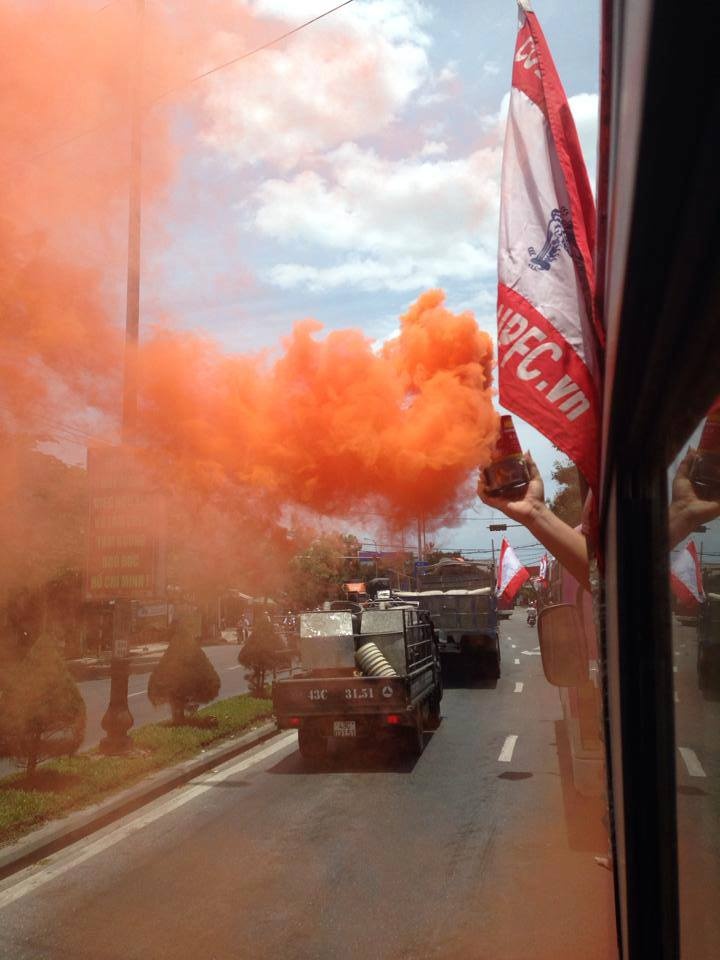 Clip CĐV đốt pháo khói làm náo loạn thành phố Đà Nẵng.