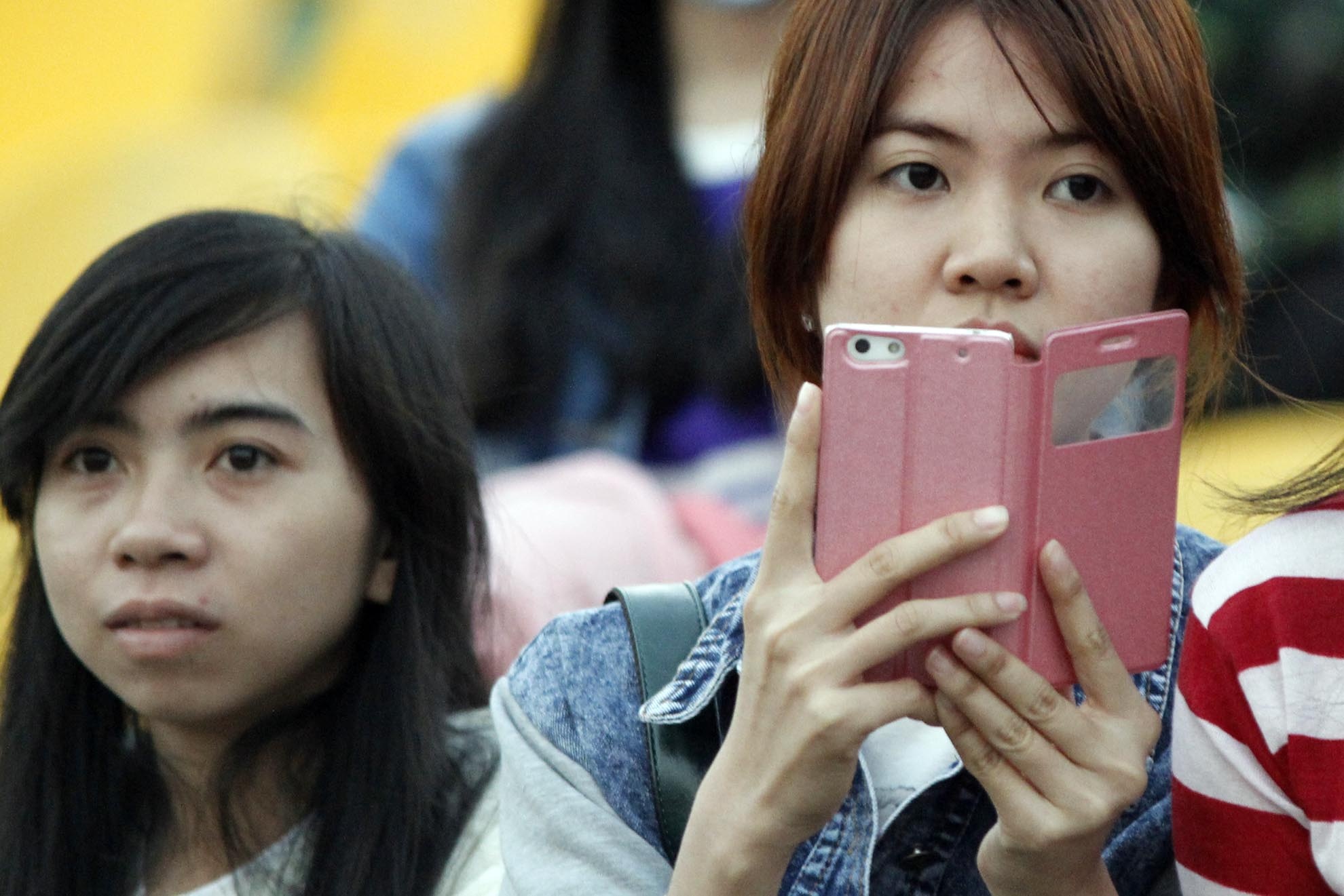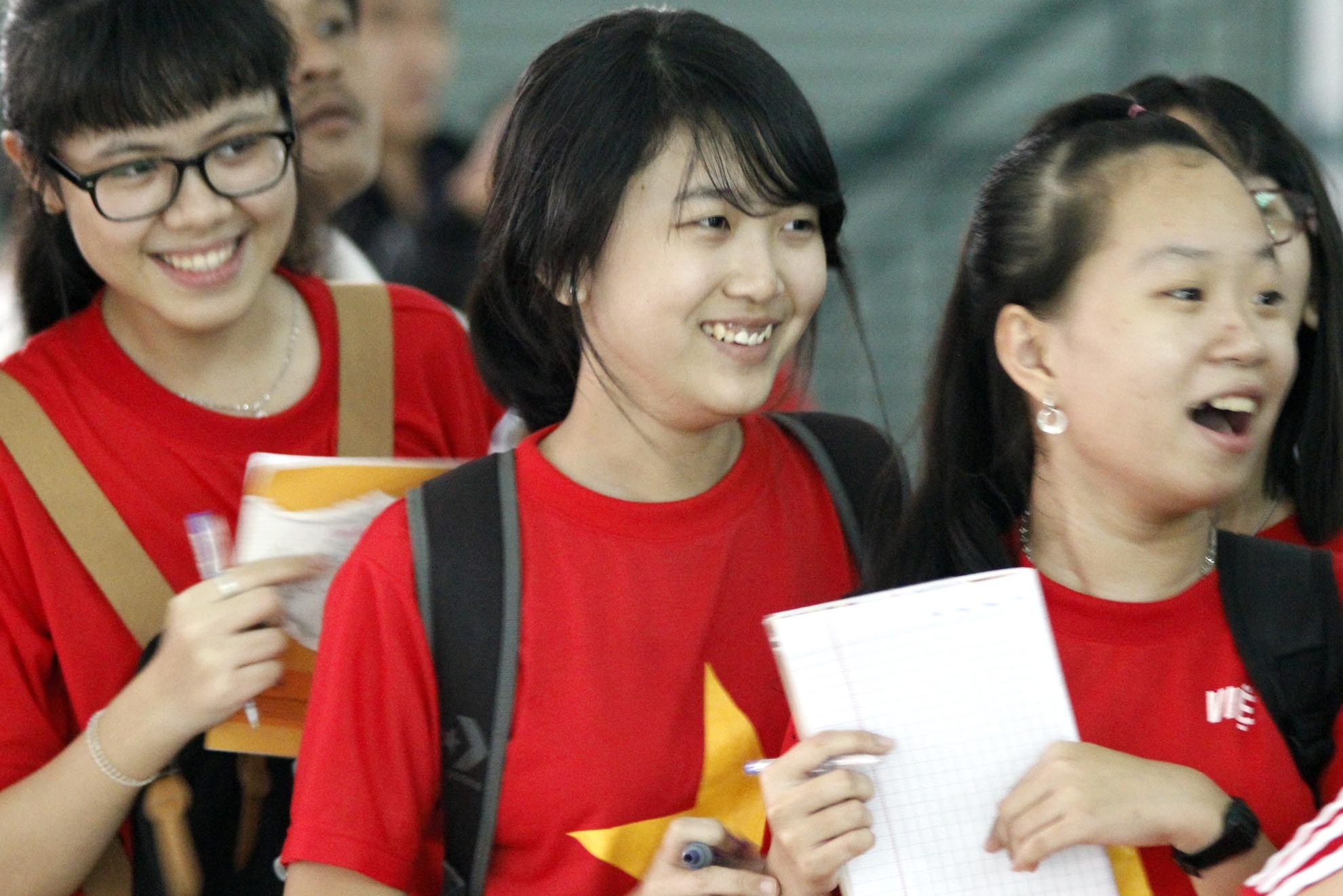 | Vẻ vui sướng của các fan nữ trên sân vận động Cần Thơ |