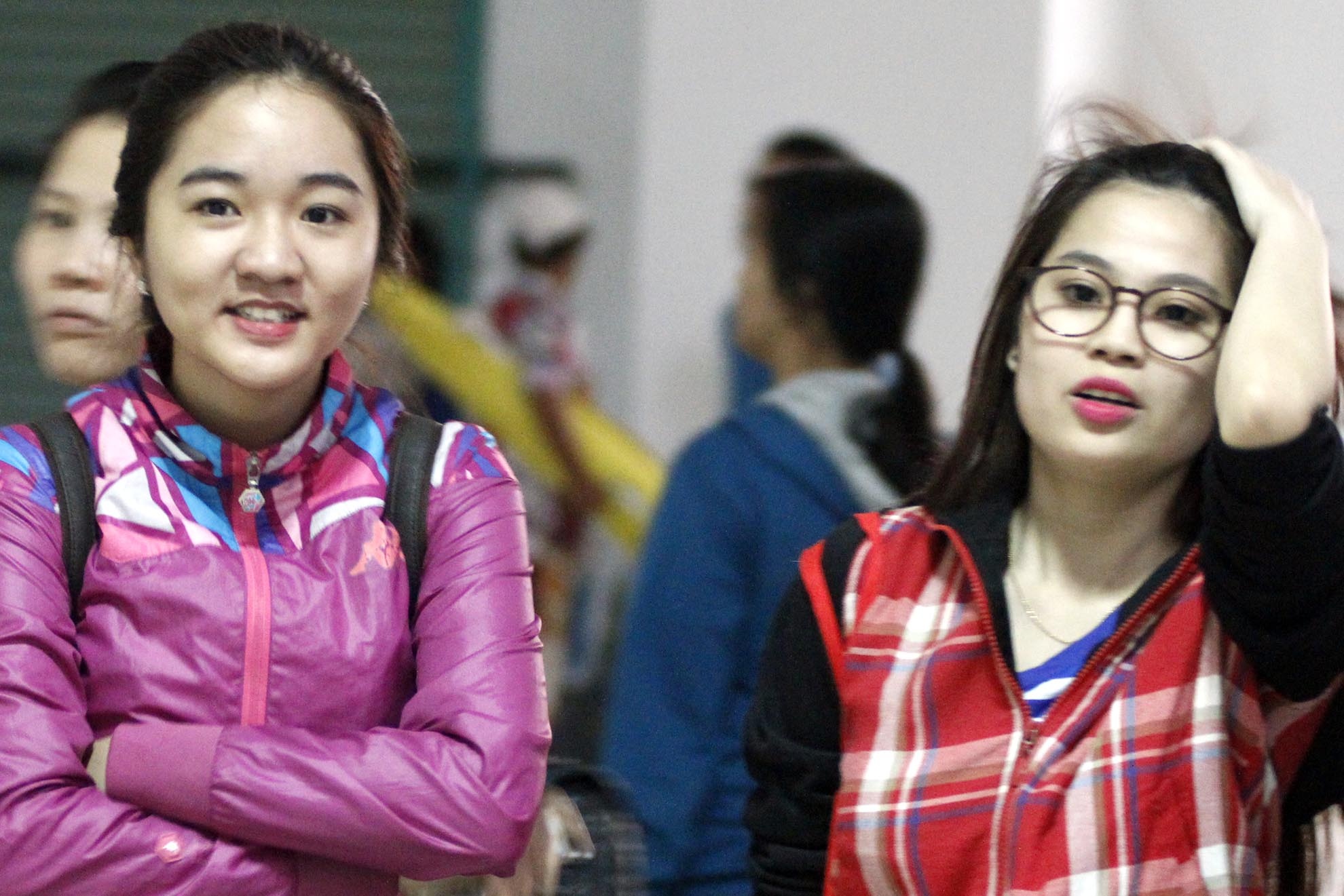 | Hai fan nữ xinh đẹp chờ sẵn để được trực tiếp gặp mặt những cầu thủ trẻ tài năng của HAGL. |