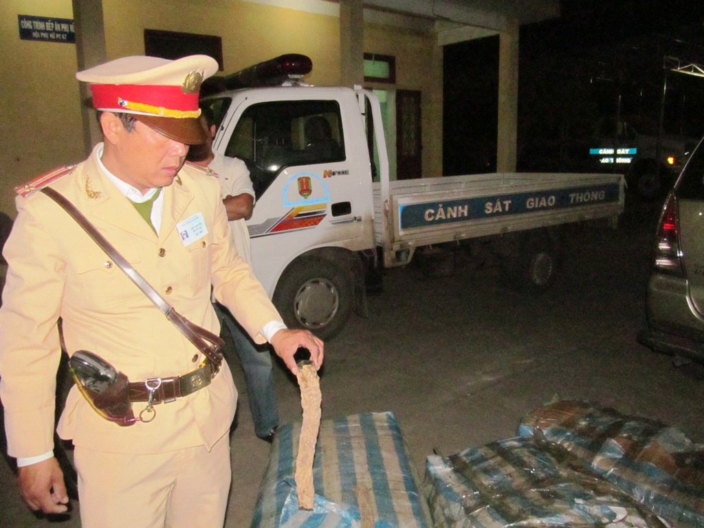 Theo tài xế, số hàng trên nặng 239kg, có tên là gỗ Hải Lưu, được vận chuyển theo đường hàng không từ Malaysia về sân bay Nội Bài, sau đó được chuyển từ Hà Nội vào Đà Nẵng, rồi chở ngược ra Hà Tĩnh để tiêu thụ.