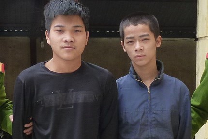 | Hai tên cướp trong nhóm thủ phạm bị công an Hoài Đức bắt giữ. |