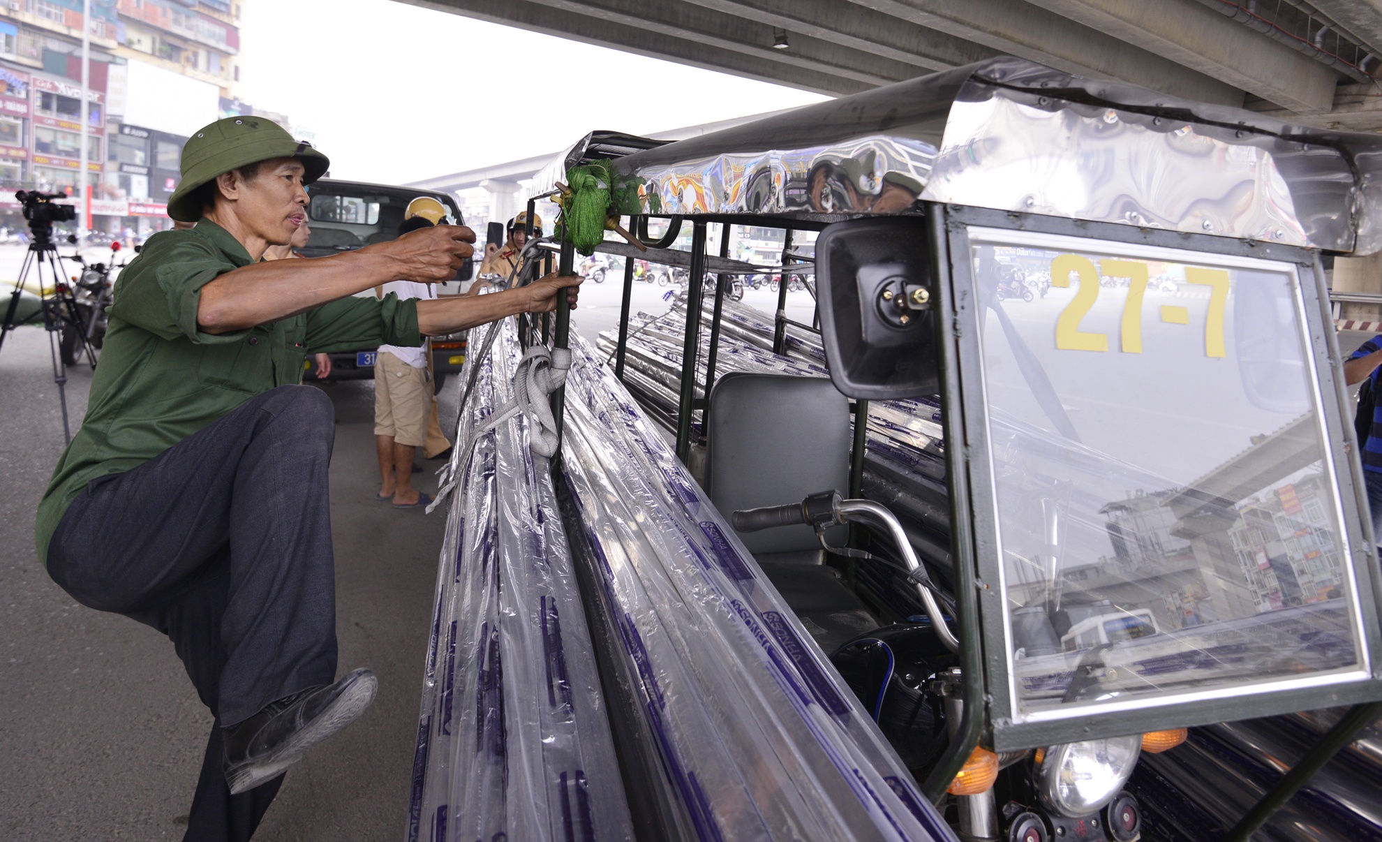 | Xe ba bánh chủ yếu là loại tự chế. Nhiều người ví nó là "hung thần" trên đường phố Hà Nội, thường xuyên vượt đèn đỏ, chở hàng cồng kềnh, đi ngược chiều, thách thức cảnh sát. |
