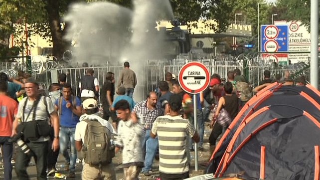 Để trấn áp dòng người di cư cố gắng chui qua hàng rào dây thép gai qua biên giới Serbia, cảnh sát Hungary buộc phải phun hơi cay và vòi rồng để ngăn cản.