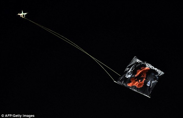 | Trong trận đấu giữa Serbia và Albania tại vòng loại EURO 2016 hồi giữa tháng 10 vừa qua, một CĐV của Albania đã điều khiển chiếc máy bay không người lái mang theo cờ Albania thả xuống sân khi trận đấu đang diễn ra. |