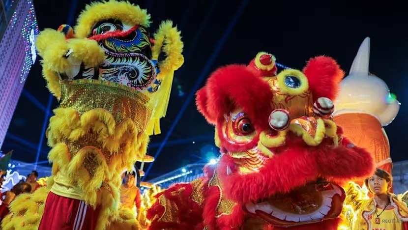 Các vũ công múa lân biểu diễn trước thềm lễ đón Tết Nguyên đán tại một trung tâm thương mại ở Bangkok (Thái Lan) ngày 15/2. Ảnh: Reuters. |
