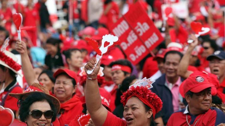 Sáng sớm hôm nay, phe Áo đỏ - lực lượng ủng hộ chính phủ - thông báo họ sẽ chấm dứt việc tập trung tại sân vận động ở thủ đô nhằm giúp cảnh sát kiểm soát cuộc biểu tình của phe chống chính phủ. Ảnh: Reuters.