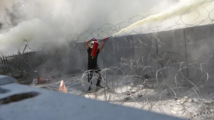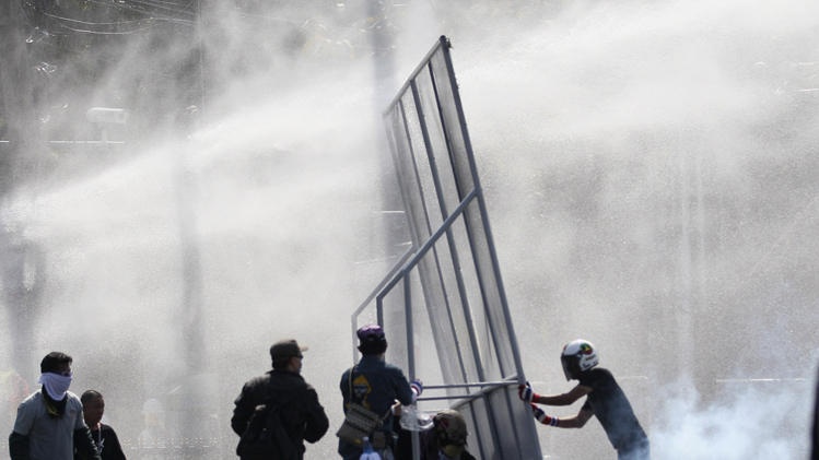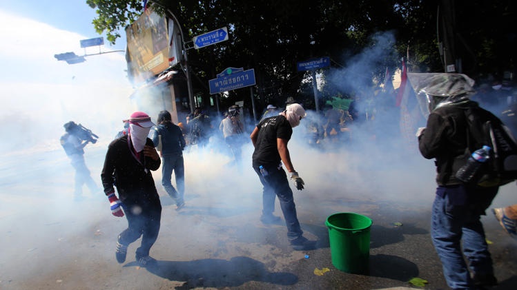 Cảnh sát chống bạo động Thái Lan đã phun hơi cay và nước để ngăn chặn những người biểu tình xông vào trụ sở chính phủ tại thủ đô hôm nay. Người biểu tình đáp trả bằng bom xăng, đá, bình xịt cứu hỏa và nhiều thứ khác.