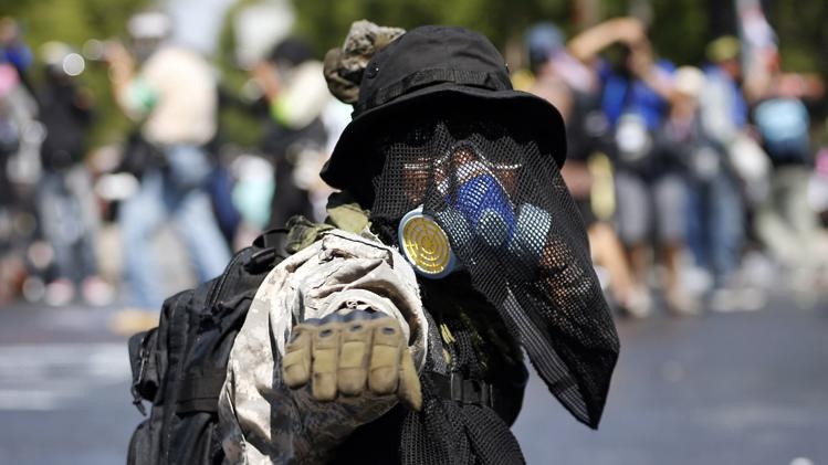 Bình cứu hỏa trở thành một trong những vũ khí chống cảnh sát của người biểu tình. Ảnh: AP.