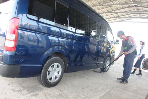 | Các phương tiện ra vào các khu vực thi đấu đều phải bị rà soát bom mìn. |
