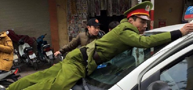 | Rất nhiều trường hợp cảnh sát bám cần gạt nước, nhảy lên nắp capo yêu cầu tài xế dừng xe. Ảnh minh họa. |