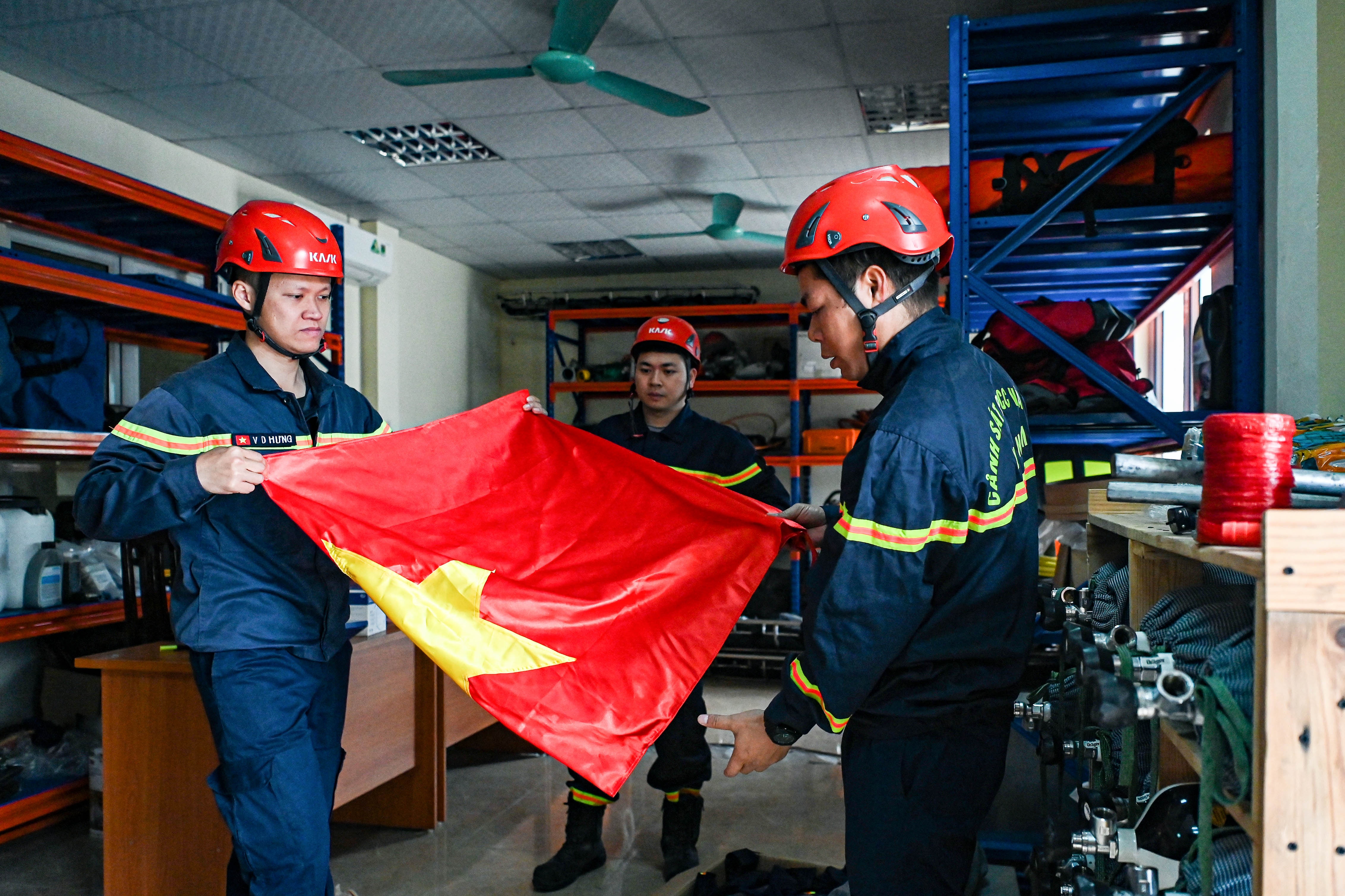Những ngày qua, khu phơi quần áo của Trung tâm Huấn luyện và ứng phó về PCCC & CNCH luôn trong tình trạng quá tải. Gần chục bộ quần áo đặc chủng được phơi ngay ngắn, mỗi bộ khi chưa thấm nước đã nặng khoảng 3-4 kg. Chúng vừa trở về sau khi giúp các chiến sĩ Việt Nam hoàn thành nhiệm vụ cứu nạn trong cái rét -6 độ tại Thổ Nhĩ Kỳ.