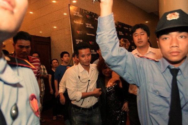 | Thậm chí khi chị Siu đã bước ra sân khấu, lực lượng an ninh cũng có mặt ngay bên cánh gà "trực chiến". |