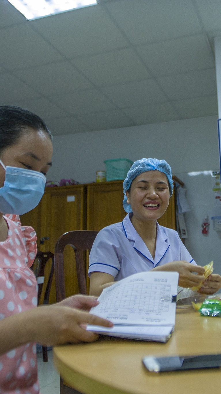 | Tạm biệt Hoài Thương, tôi đi tiếp những phòng điều trị khác theo sự chỉ dẫn của một nhân viên y tế. Nơi đó, tôi thấy nhiều bệnh nhân Covid-19 đã dần hồi phục sức khỏe, có thể đi lại và ăn uống, tâm lý họ cũng khá thoải mái. |
