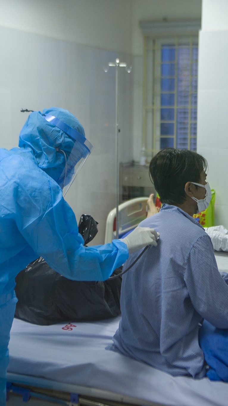 | Thấy chúng tôi đưa máy ảnh chụp, nữ bác sĩ ngạc nhiên: “Chúng tôi làm nghề thì sống chung với người bệnh. Còn mấy anh, không sợ à?". |