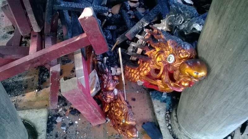 | Rất nhiều đồ vật thờ cúng đã bị lửa thiêu thành tro, biến dạng. |