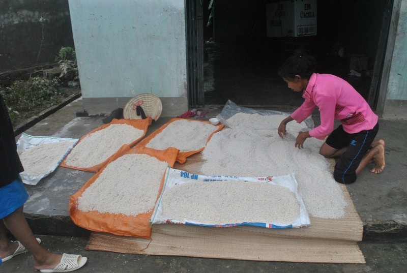 | Đến lương thực, tất cả đều đã hư hỏng. “Gia đình chẳng còn gì ngoài mớ gạo ướt này, tôi phơi chúng ra mong cứu đói ngày nào hay ngày ấy”, bà Lan buồn bã nói. |