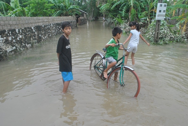 | Hiện rất nhiều hộ dân vẫn đang bị nước cô lập, đi lại rất khó khăn. |