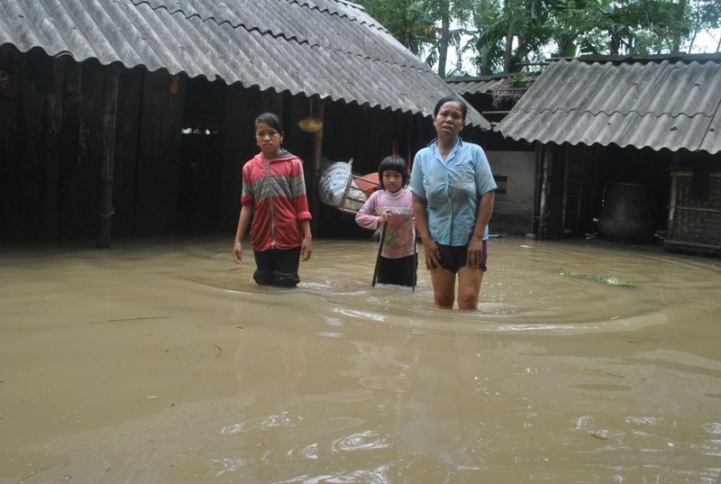 | Theo người dân kể lại, chỉ trong vòng 1h, nước lũ đã dâng cao đến nóc nhà, rất may là cán bộ địa phương đã tích cực cứu nên không gây thiệt hại về người. “Nước dân lên đến tận nóc nhà, tôi bị nước ngập lên đến đầu, tưởng chết chứ nhưng may mà có mấy cái xuồng của cán bộ đến cứu sống kịp thời”, bà Tâm kể. |