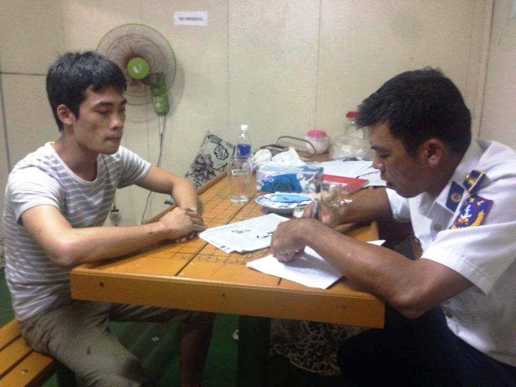 | Các thuyền viên khai báo vụ việc với cơ quan chức năng. |