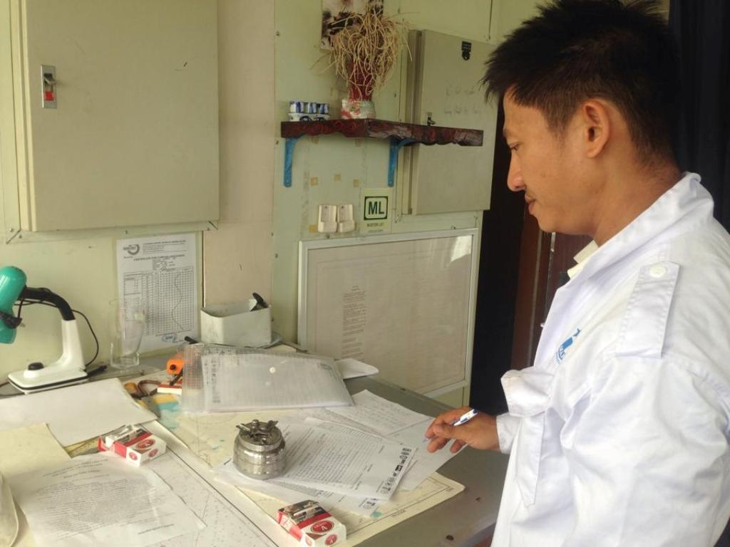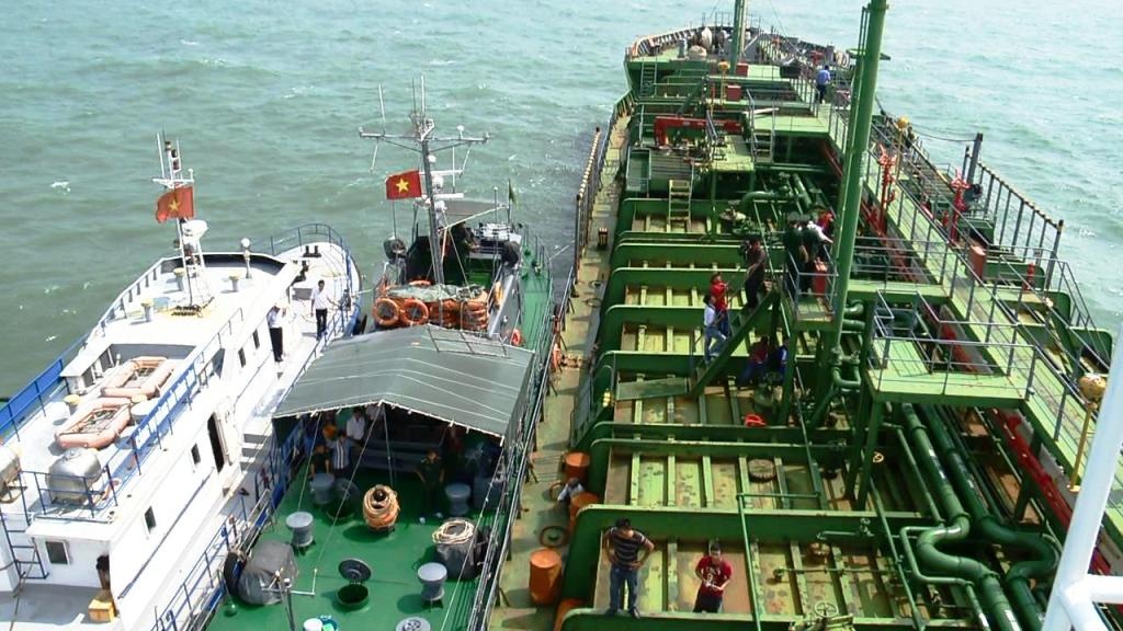 | Tổ công tác đặc biệt gồm Cảnh sát biển Vùng 3, Bộ đội Biên phòng, Công an và Cảng vụ hàng hải Vũng Tàu đã tiếp cận tàu Sunrise 689, thẩm vấn các thuyền viên và thu thập chứng cứ điều tra vụ tàu bị cướp biển khống chế. Khoang chứa dầu của tàu Sunrise nhìn từ trên buồng lái. |