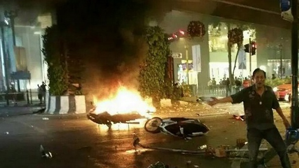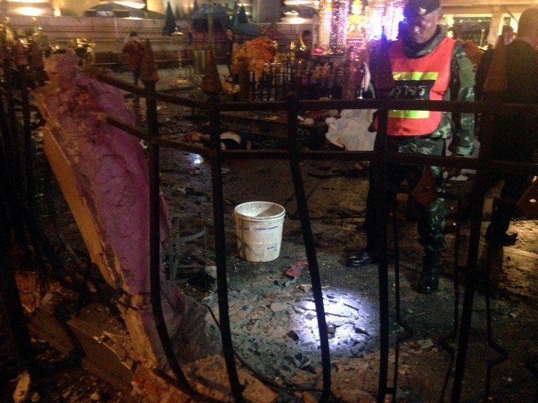 | Cảnh sát và lực lượng cứu hộ Thái Lan thông báo một quả bom phát nổ gần ngôi đền Erawan lúc 19h theo giờ địa phương. Theo Reuters, giới chức cho biết ít nhất 27 người thiệt mạng, gồm 4 người nước ngoài, và khoảng 80 người bị thương. Ảnh: Chanel News Asia |
