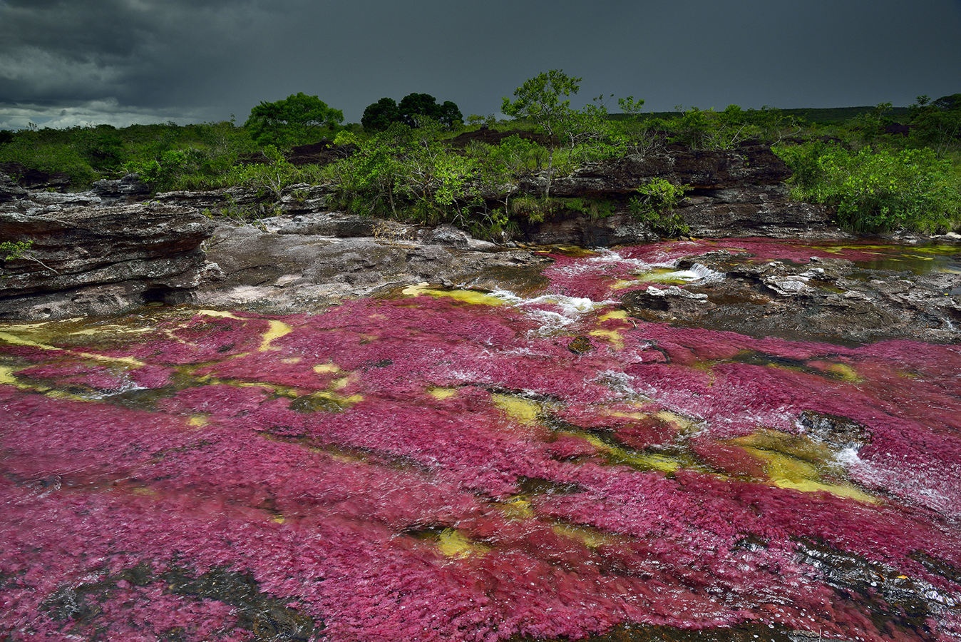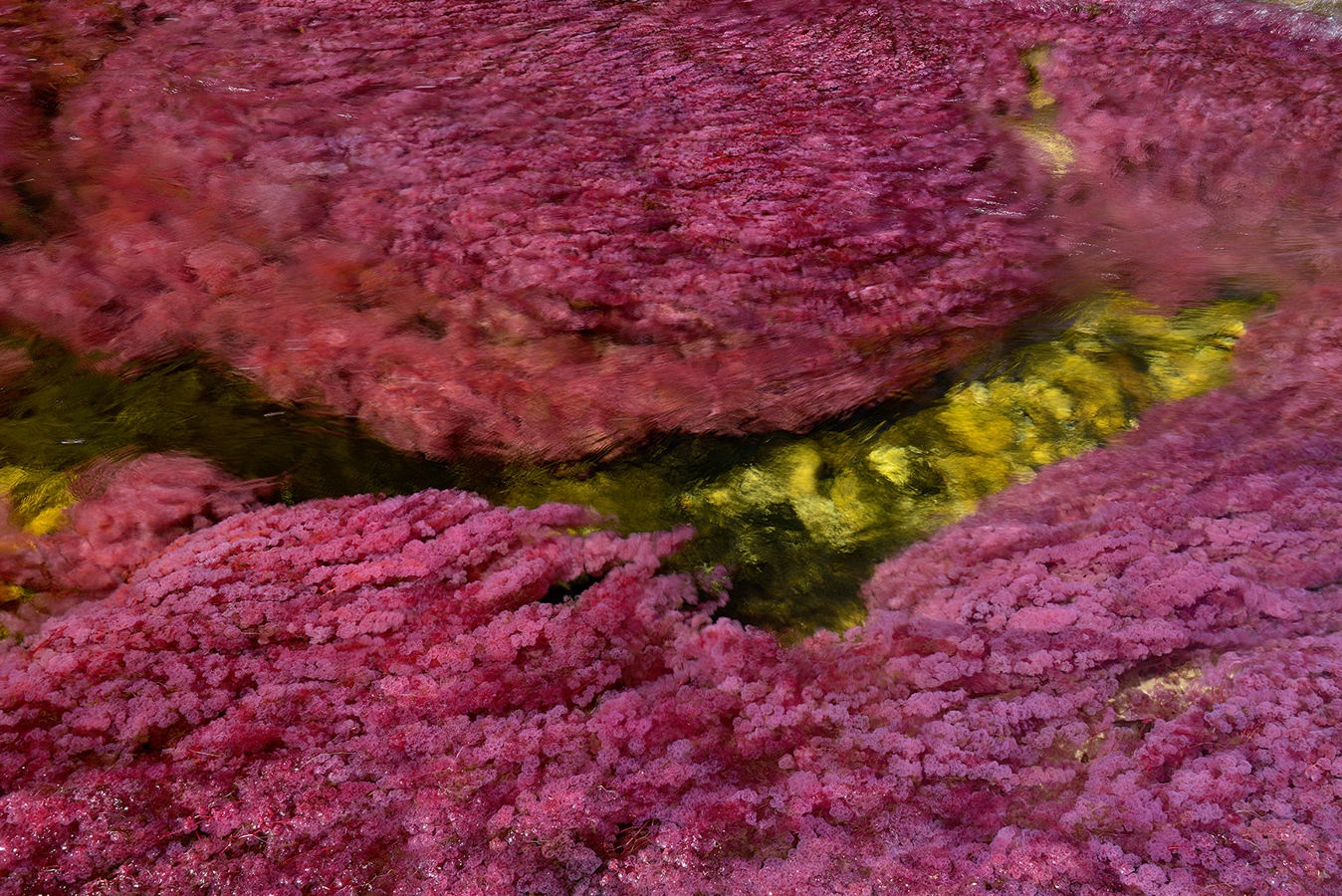 | Cano Cristales tràn ngập sắc hồng, vàng, xanh, xám của các thảm thực vật. |