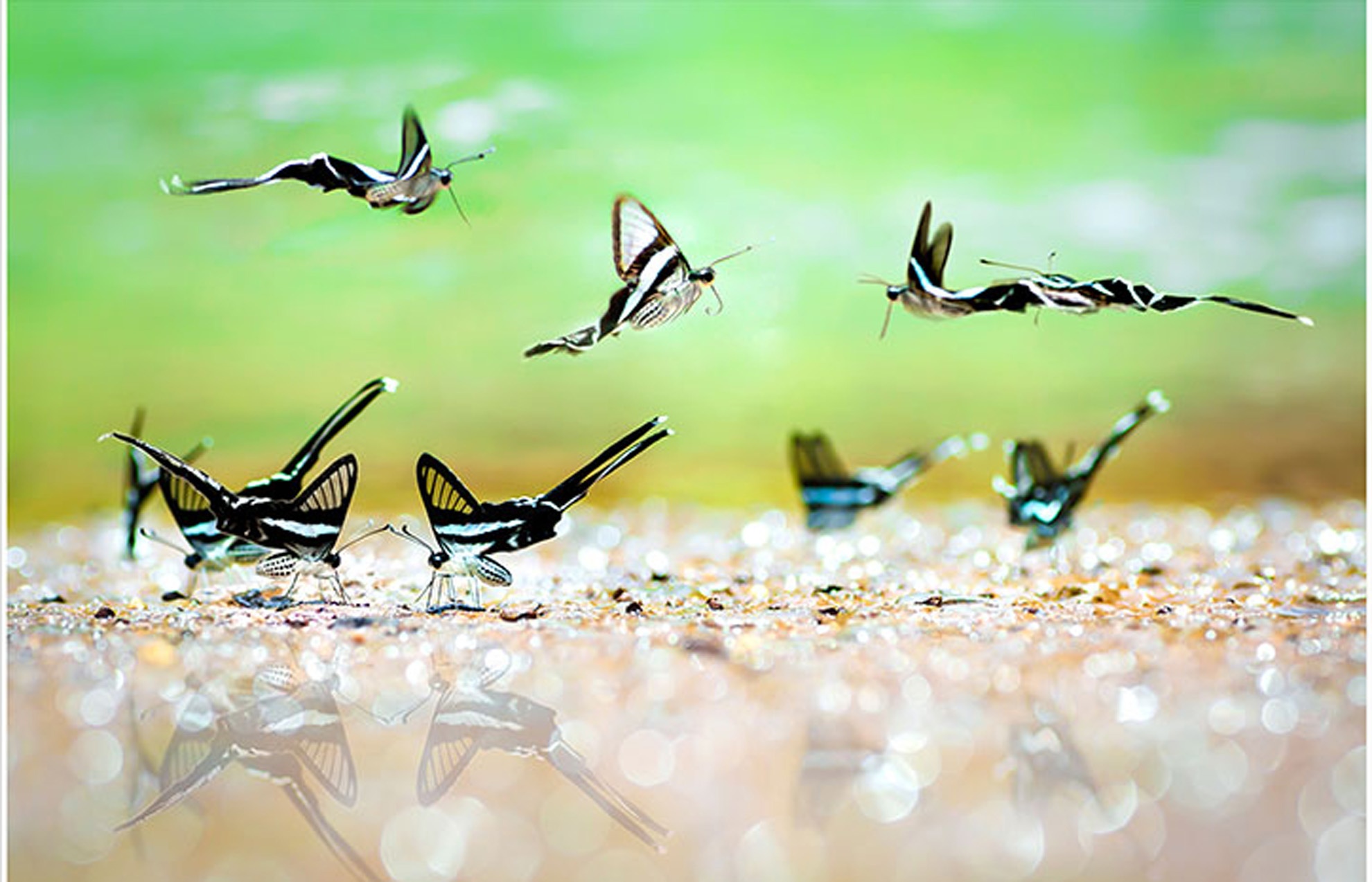 | Đây là tác phẩm "Những cánh hoa rừng" của tác giả Lý Phú Tại. Tác giả cho biết, bức ảnh này được anh chụp trong một lần đến rừng nguyên sinh Mã Đà, Đồng Nai. Trong ảnh là những con bướm đang tìm bạn tình mùa sinh sản. |