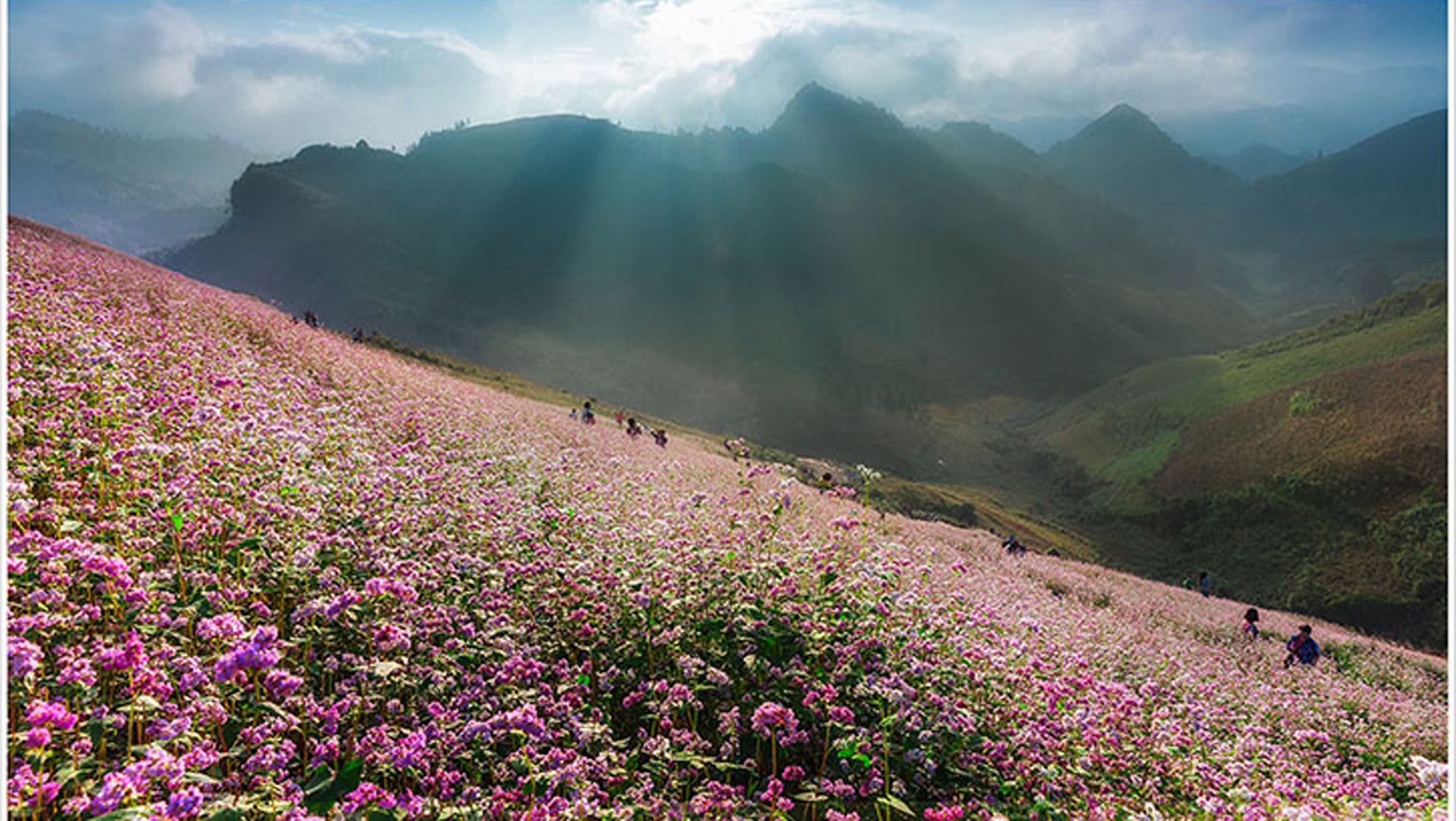 Thể loại ảnh đơn của triển lãm thể hiện những khoảnh khắc thiên nhiên sống động, những lễ hội - tín ngưỡng độc đáo, khoảnh khắc đời thường mộc mạc, các công trình kiến trúc tâm linh… Trong hình là tác phẩm "Hoa tam giác mạch" được tác giả Đỗ Hữu Tiến chụp ở Lào Cai năm 2014.