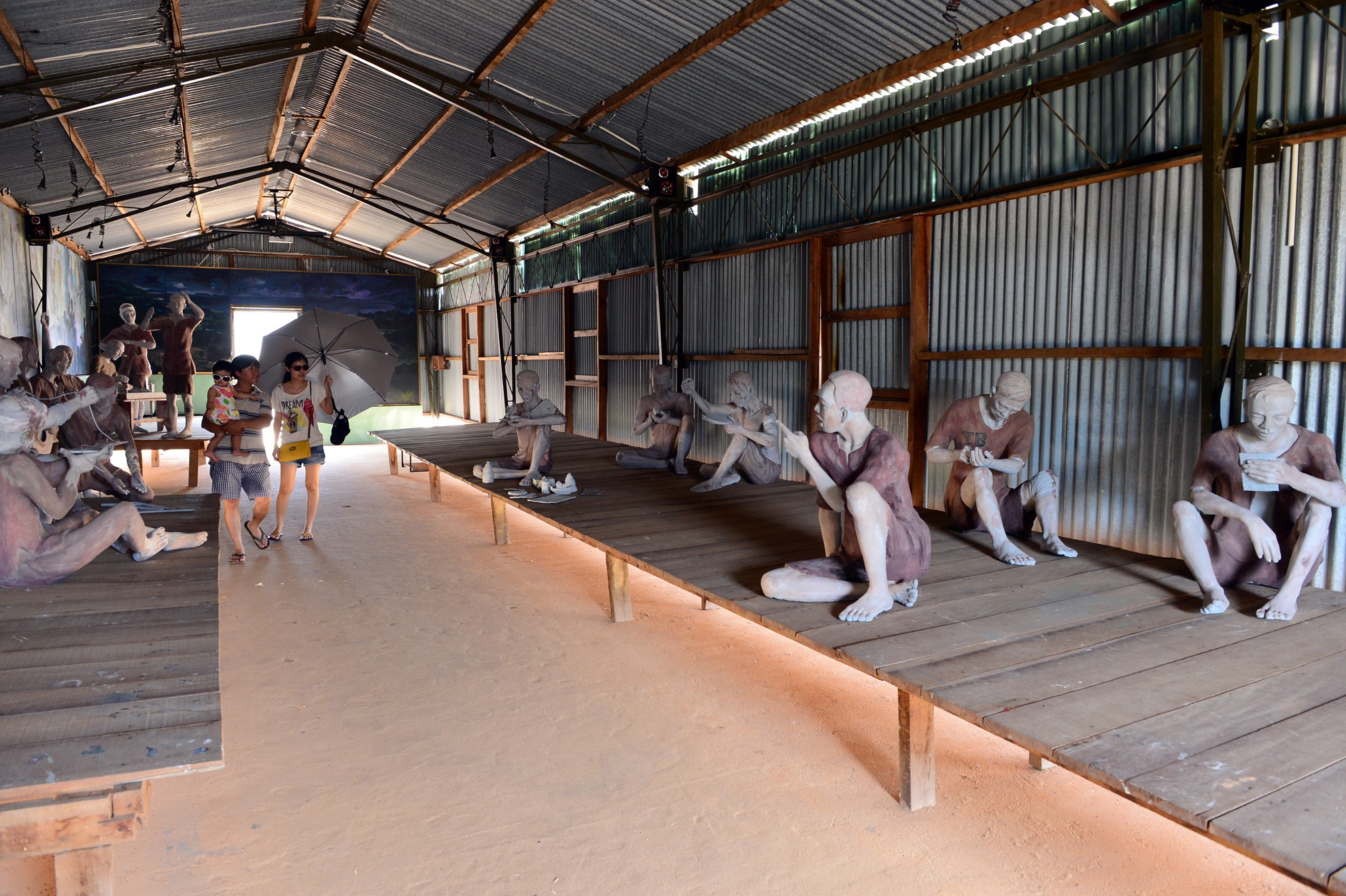 | Đây là một trong số những nhà giam đó, đã được phục dựng lại giống hệt thời chiến. Diện tích 100m2, giam giữ từ 70 đến 120 người, có lúc nhiều hơn. Nhà giam này ban đầu nền bằng đất tuy nhiên sau đó có nhiều cuộc vượt ngục của các tù binh nên Mỹ cho tráng nền xi măng, khung sắt, mái tôn nên ban ngày rất nóng, đêm thì lạnh. Lúc đông người phải thay đổi nhau, người này nằm, người kia phải ngồi. |