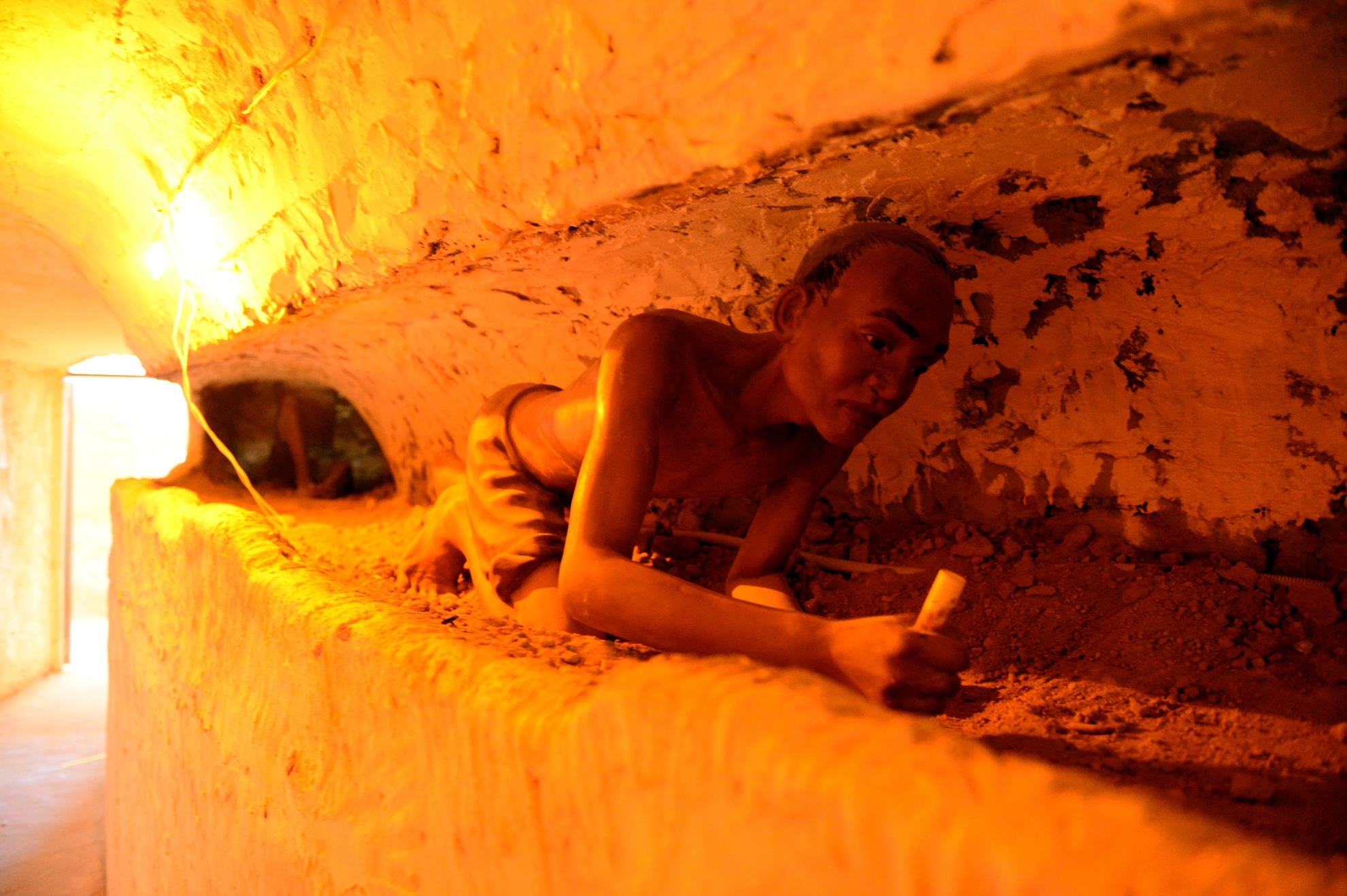 | Cảnh đào hầm vượt ngục của các tù binh ở dưới hầm bên trong nhà tù. |