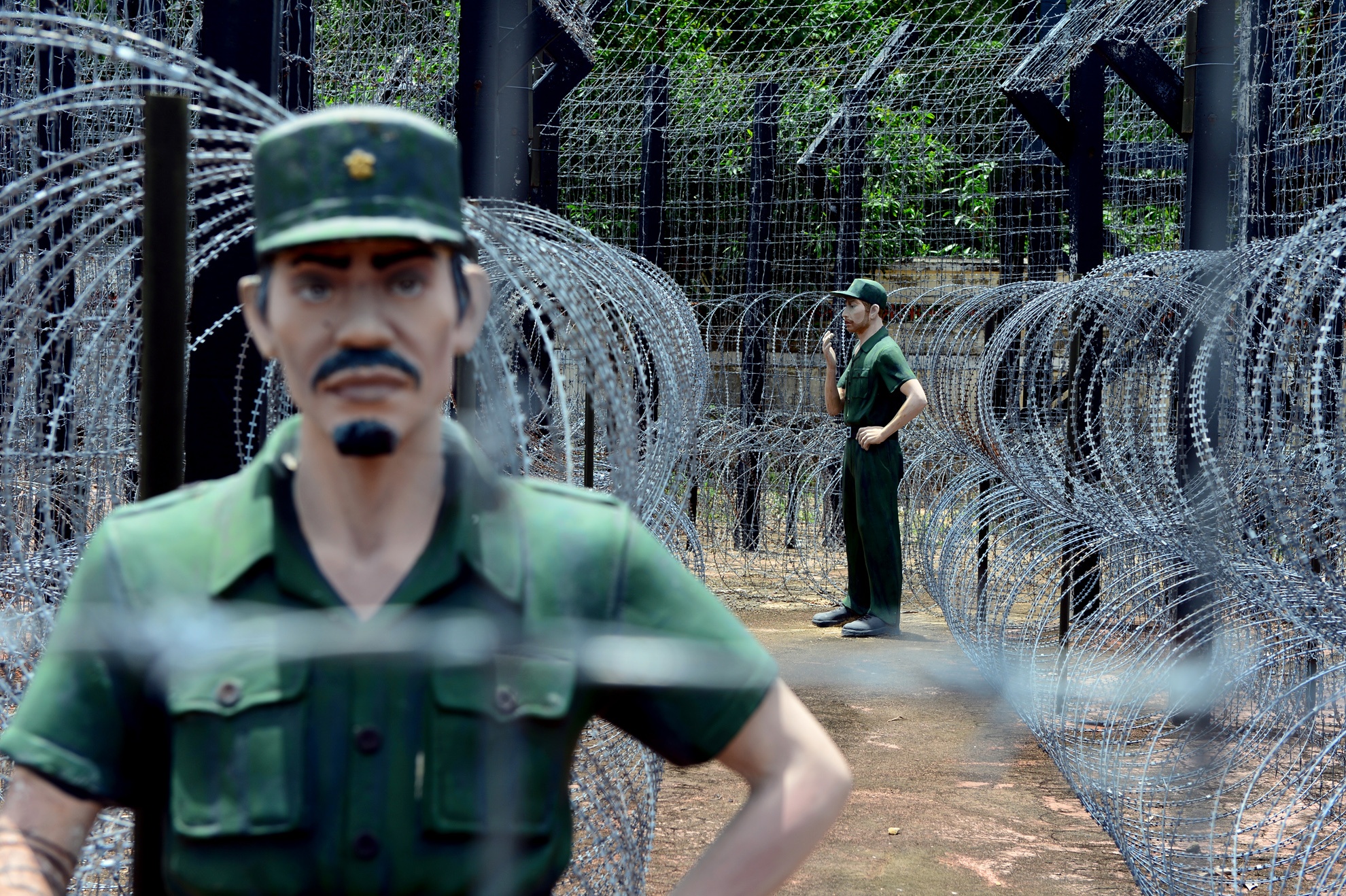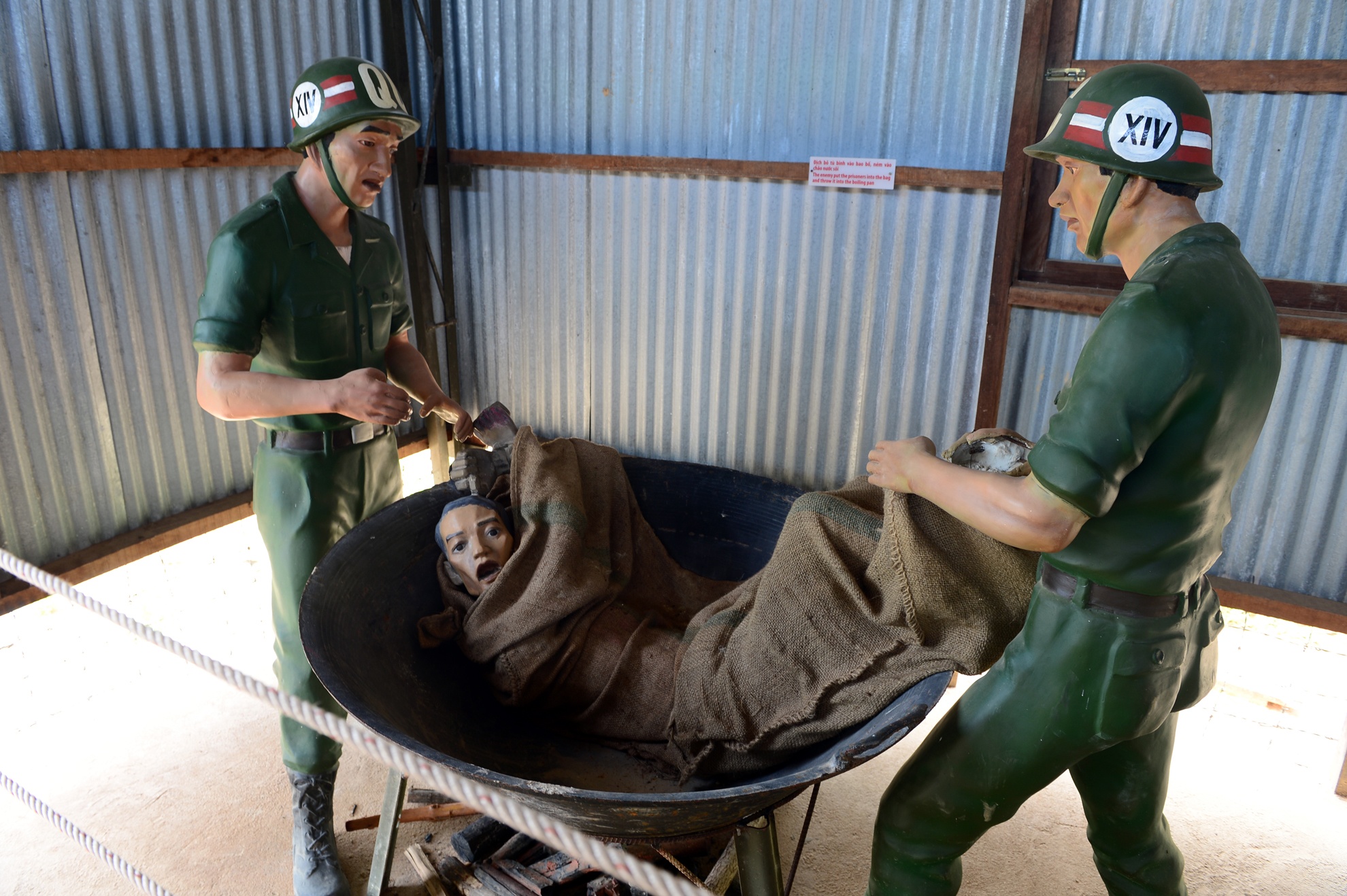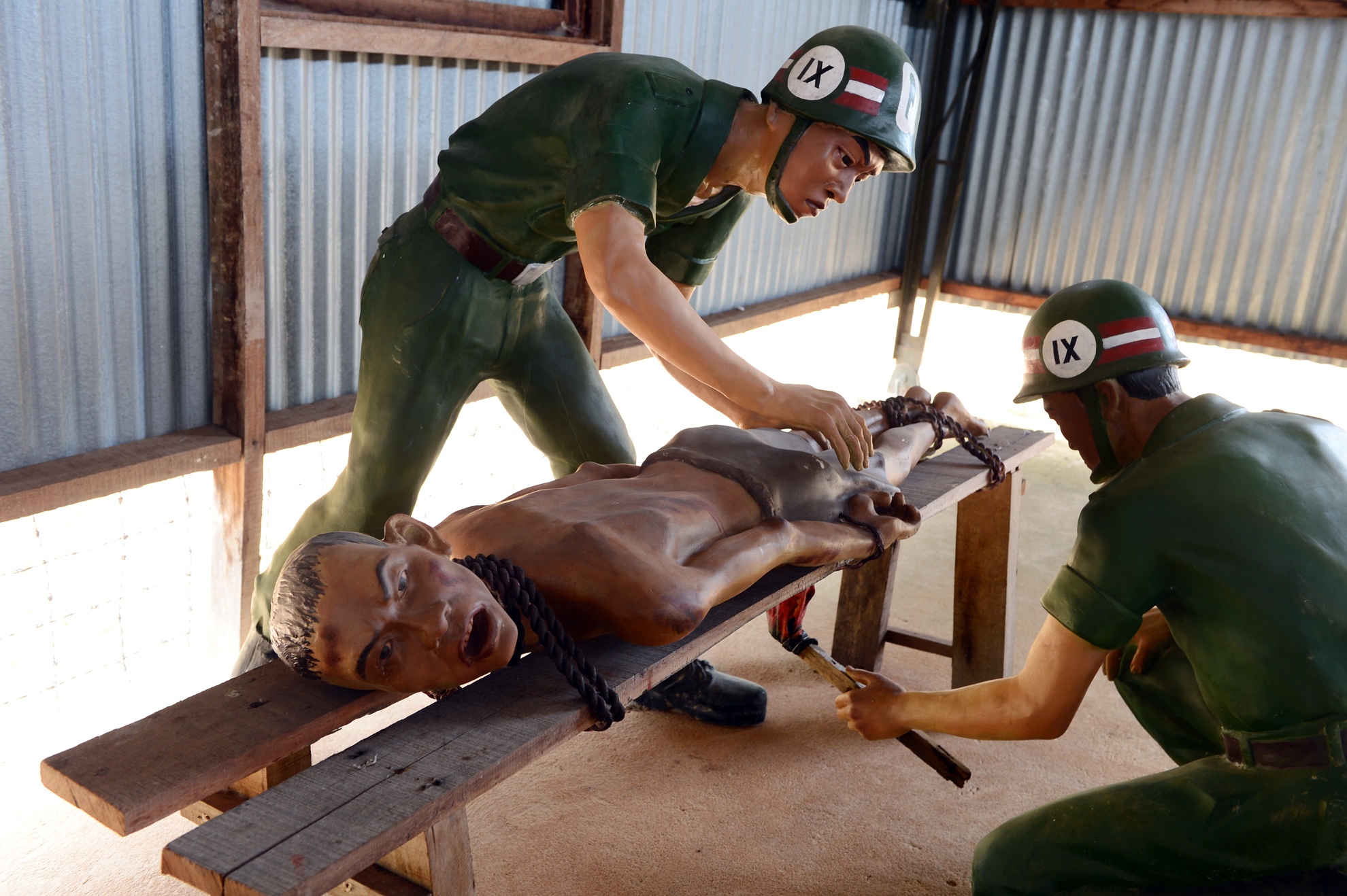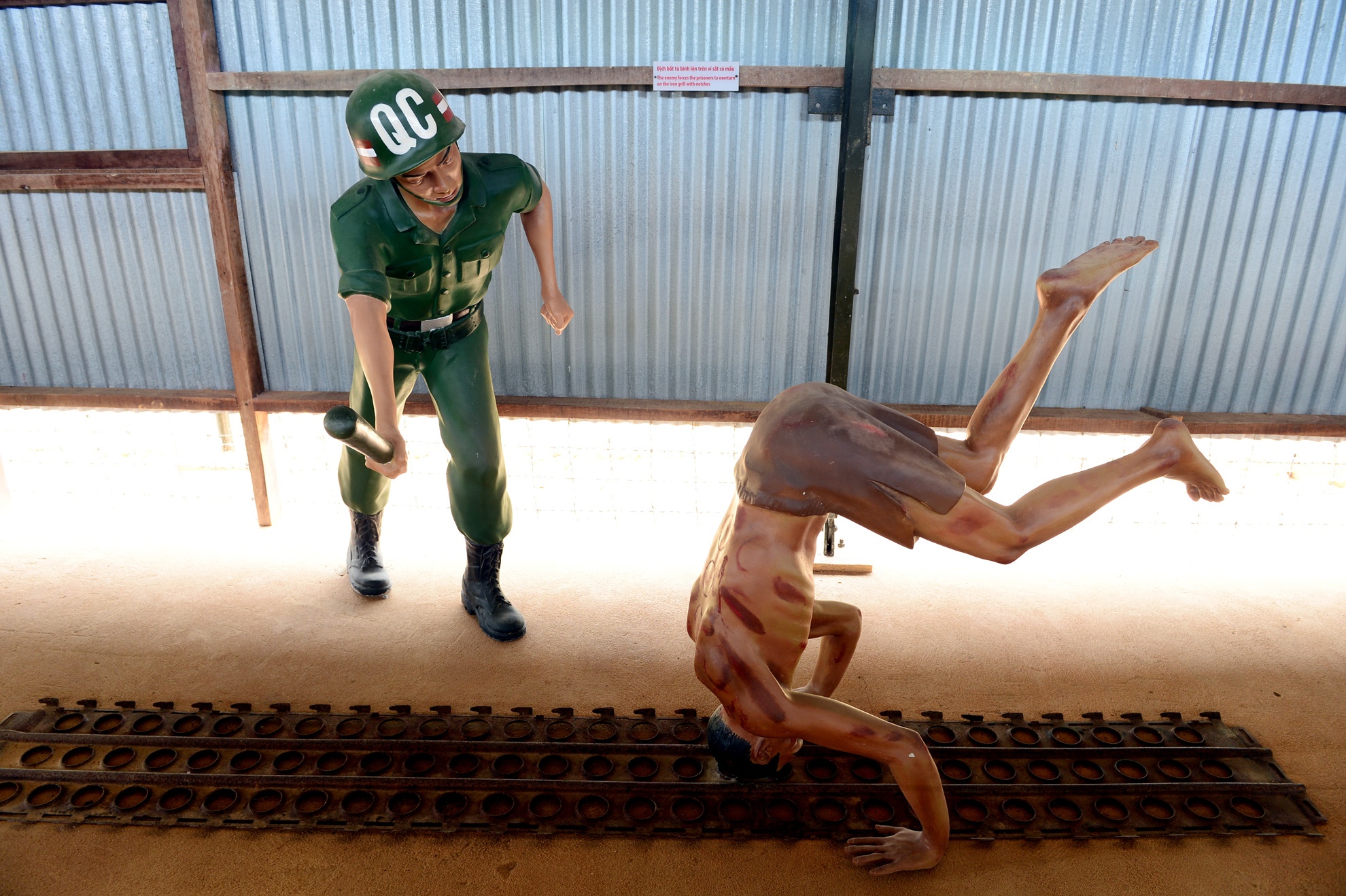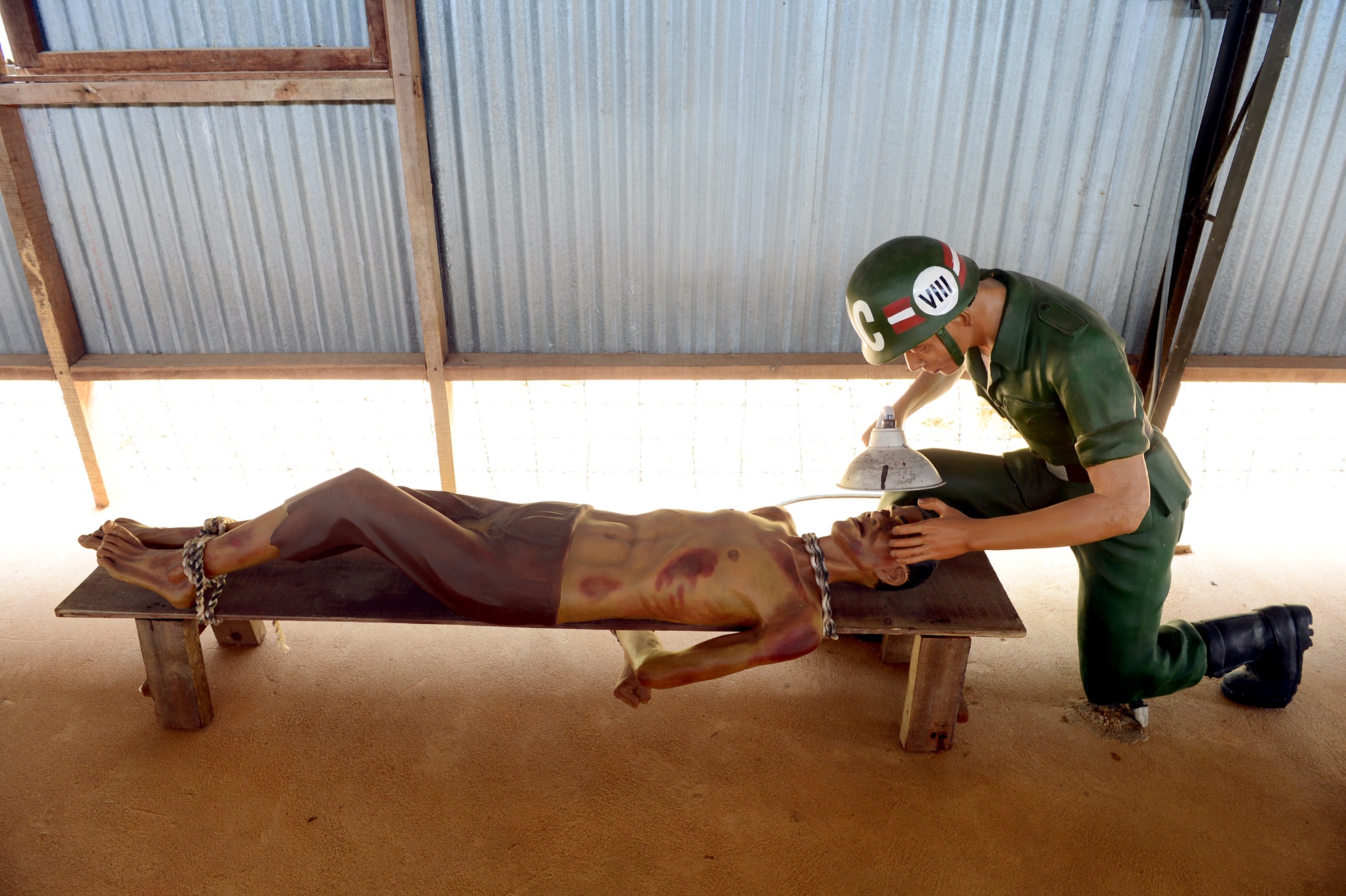 Không chỉ bị nhốt lom khom trong các chuồng cọp kẽm gai, địch còn dùng đủ loại thủ đoạn để tra tấn các chiến sĩ cách mạng. Hình ảnh mô phỏng tại nhà tù Phú Quốc (Kiên Giang).