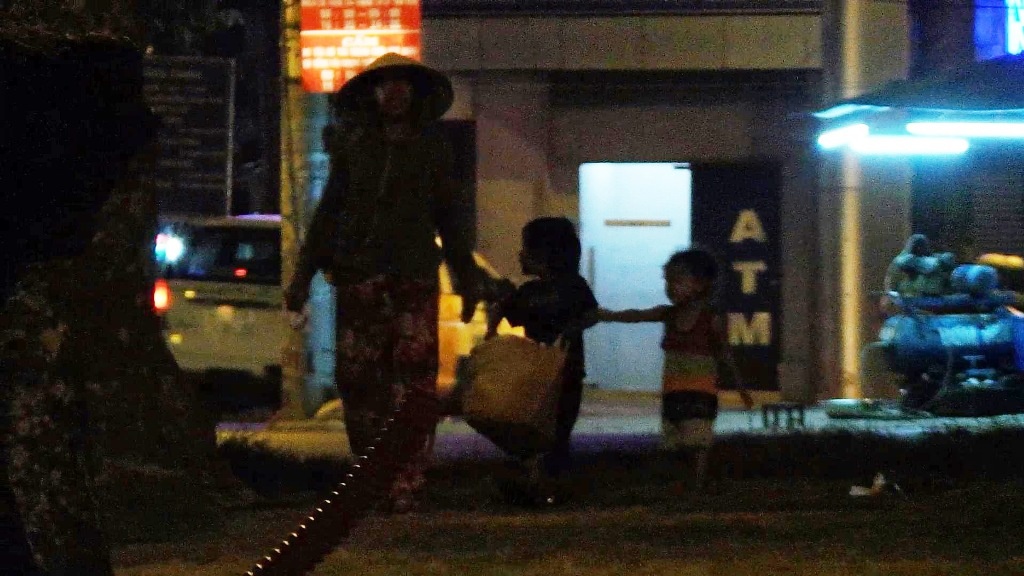 | Khoảng 3 tháng nay, hình ảnh một phụ nữ gần 30 tuổi cùng hai đứa trẻ thường xuyên xuất hiện tại giao lộ Lê Đại Hành - Ba Tháng Hai vào mỗi tối. Trong đó người phụ nữ ẵm một đứa bé ngủ li bì trên tay, đứa bé còn lại chen chúc trong dòng xe cộ xin tiền và đem về nộp. |