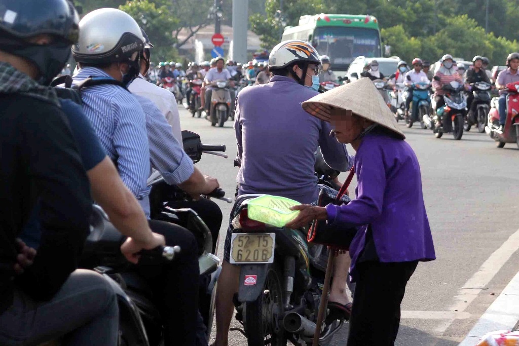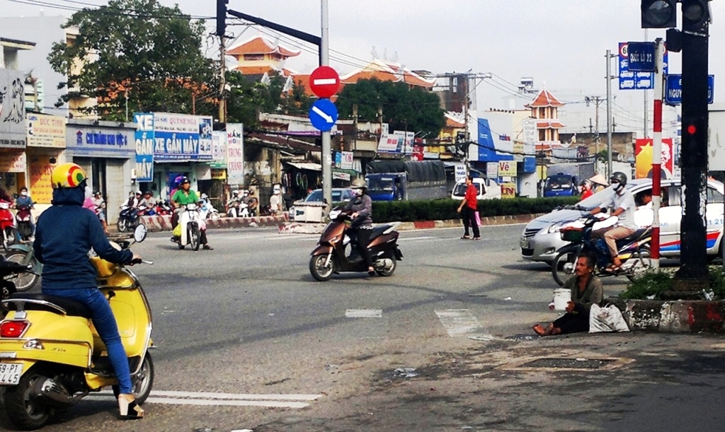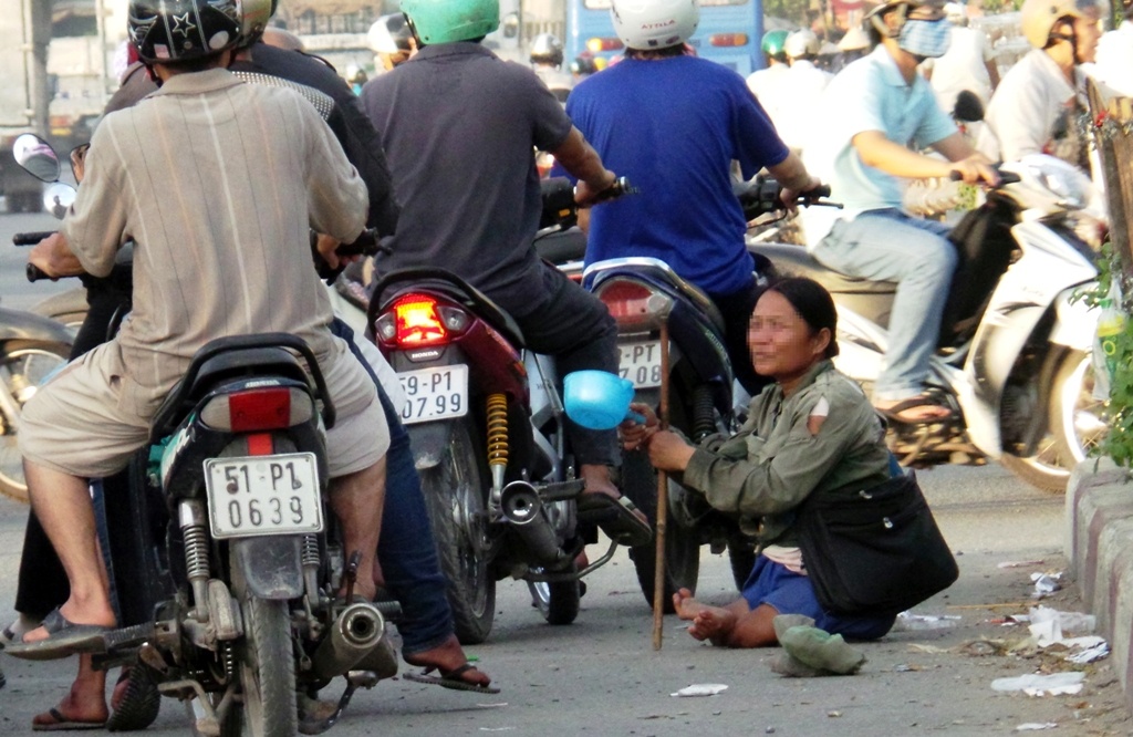 | Người dân ở giao lộ Hương lộ 2 - Quốc lộ 1A, quận Bình Tân cho biết, người phụ nữ tật nguyền được một người đàn ông chở đến nơi này vào mỗi sáng và đón đi vào chiều tối. Cứ xin ở đây khoảng 3-4 ngày thì người phụ nữ đổi địa điểm một lần. Khoảng vài ngày sau sẽ xuất hiện lại ở đây. |