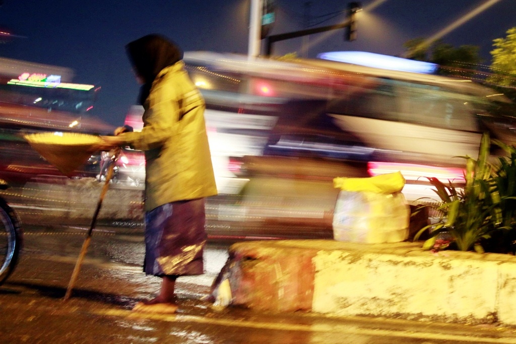 | Người già cũng được những kẻ chăn dắt sử dụng vào việc bán bông, tăm nhưng mục đích chính là "câu" lòng thương để xin tiền trên rất nhiều ngã 3, ngã tư ở Sài Gòn. Những cụ già này phải phơi nắng, mưa từ sáng đến tối. |