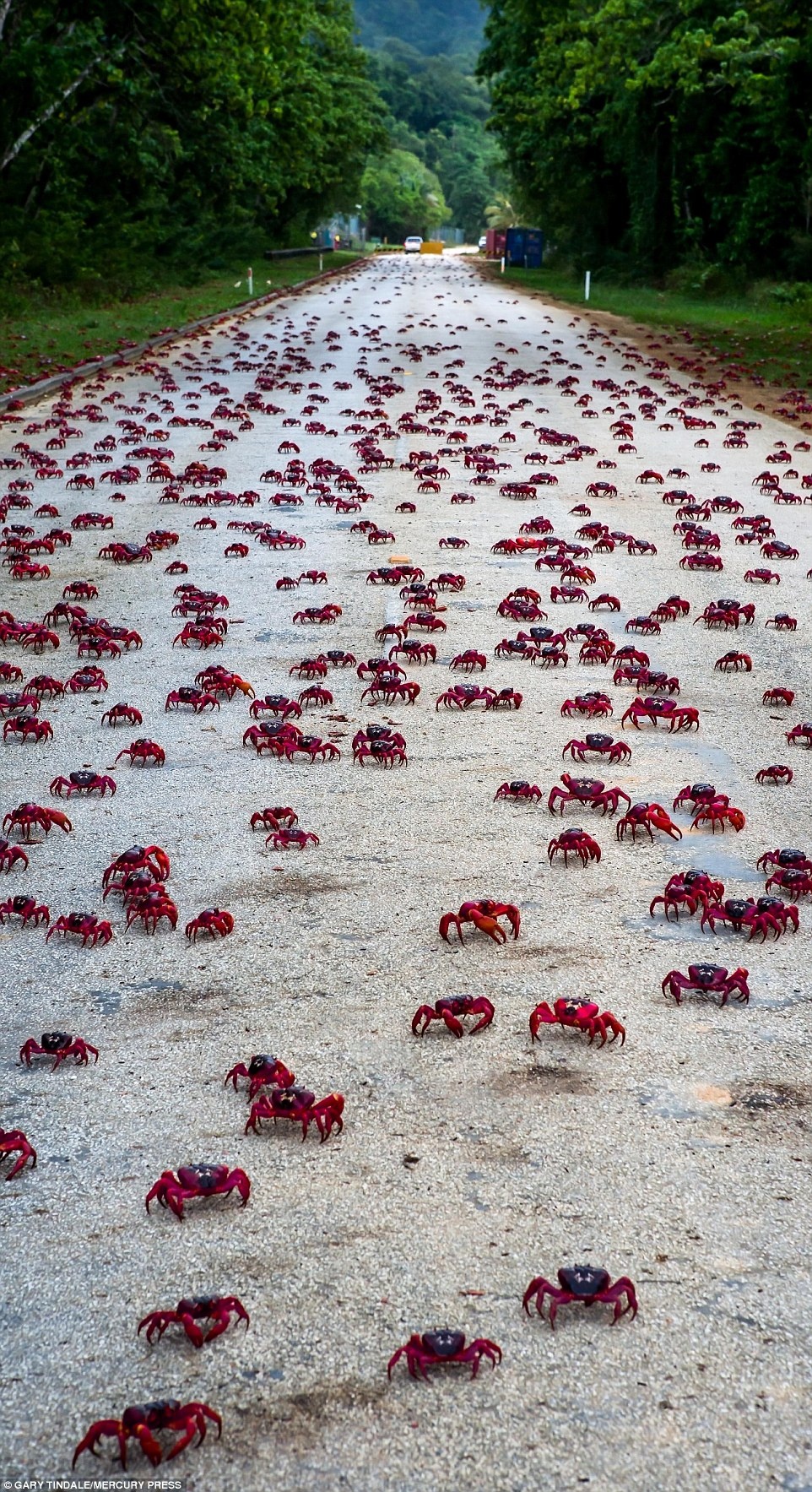 "Binh đoàn cua đỏ" di chuyển từ những khu rừng trên đảo Giáng Sinh, cách thành phố Perth, Australia 2.500 km về phía tây bắc để tới Ấn Độ Dương, nơi chúng sẽ giao phối, Daily Mail đưa tin.