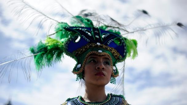 Nữ sinh Mexico mặc trang phục truyền thống trong dịp quốc khánh tại thành phố Mexico City, thủ đô của Mexico. Người dân Mexico kỷ niệm ngày độc lập vào ngày 16/9 hàng năm. Trong ngày quốc khánh, người dân thường nhảy múa, mở tiệc.... Ảnh: BBC.